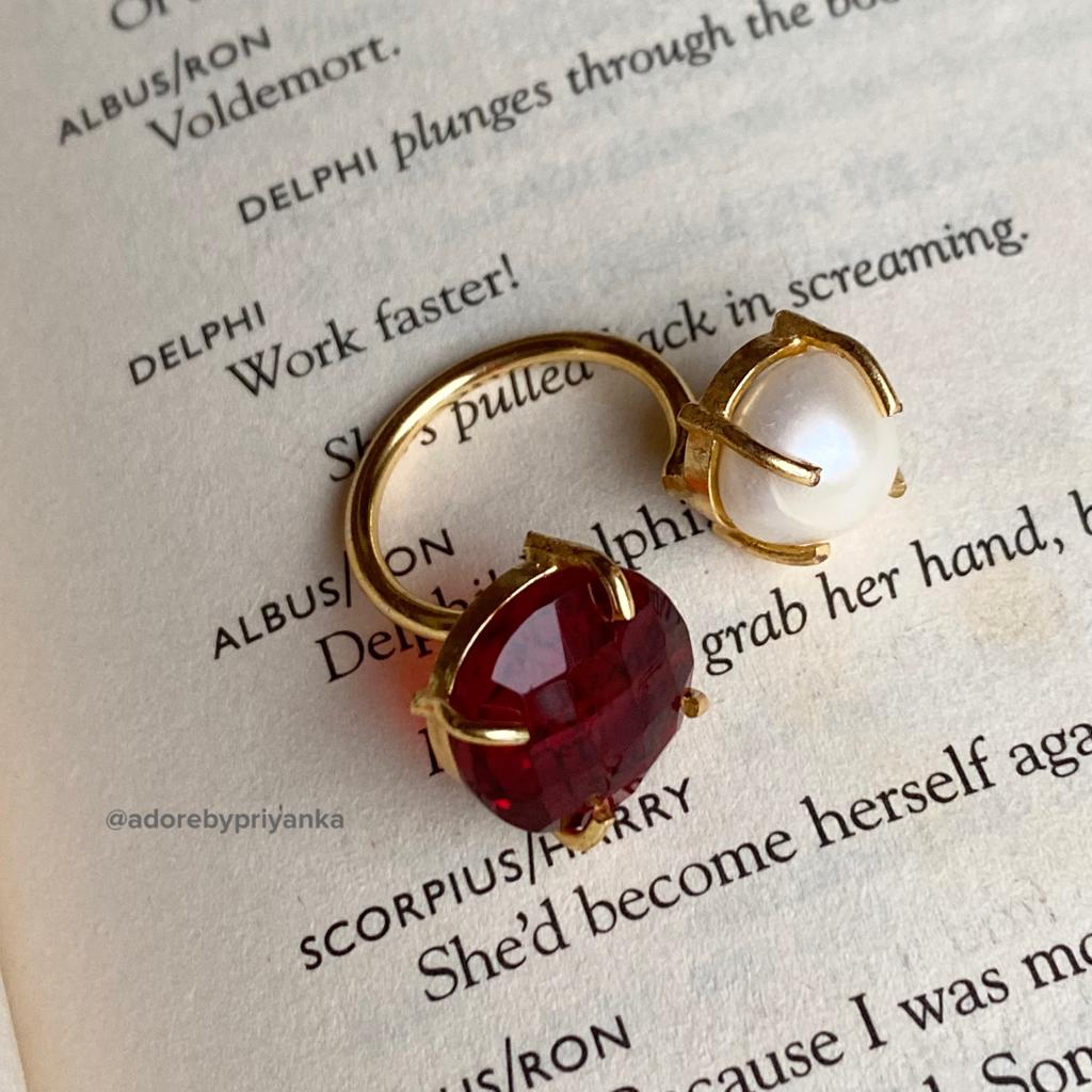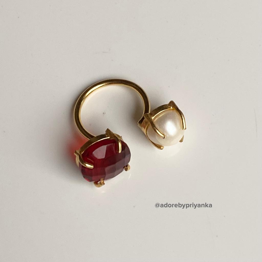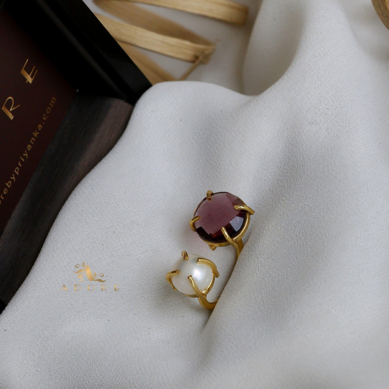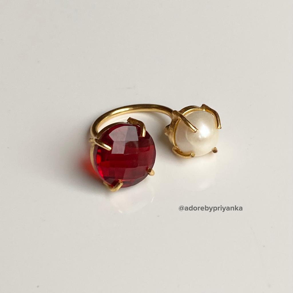 Glossy Stone Plus Pearl Ring (Colour Option)