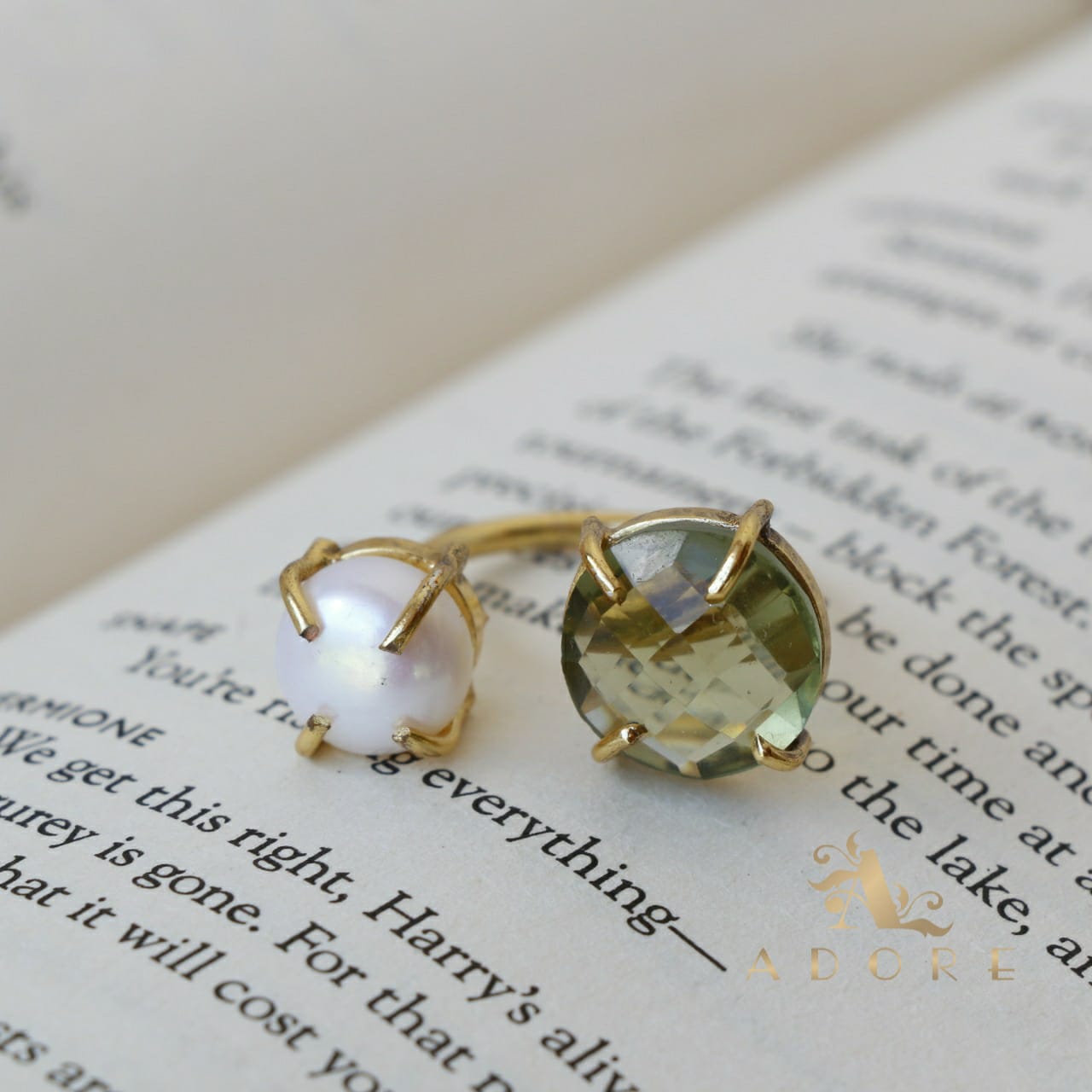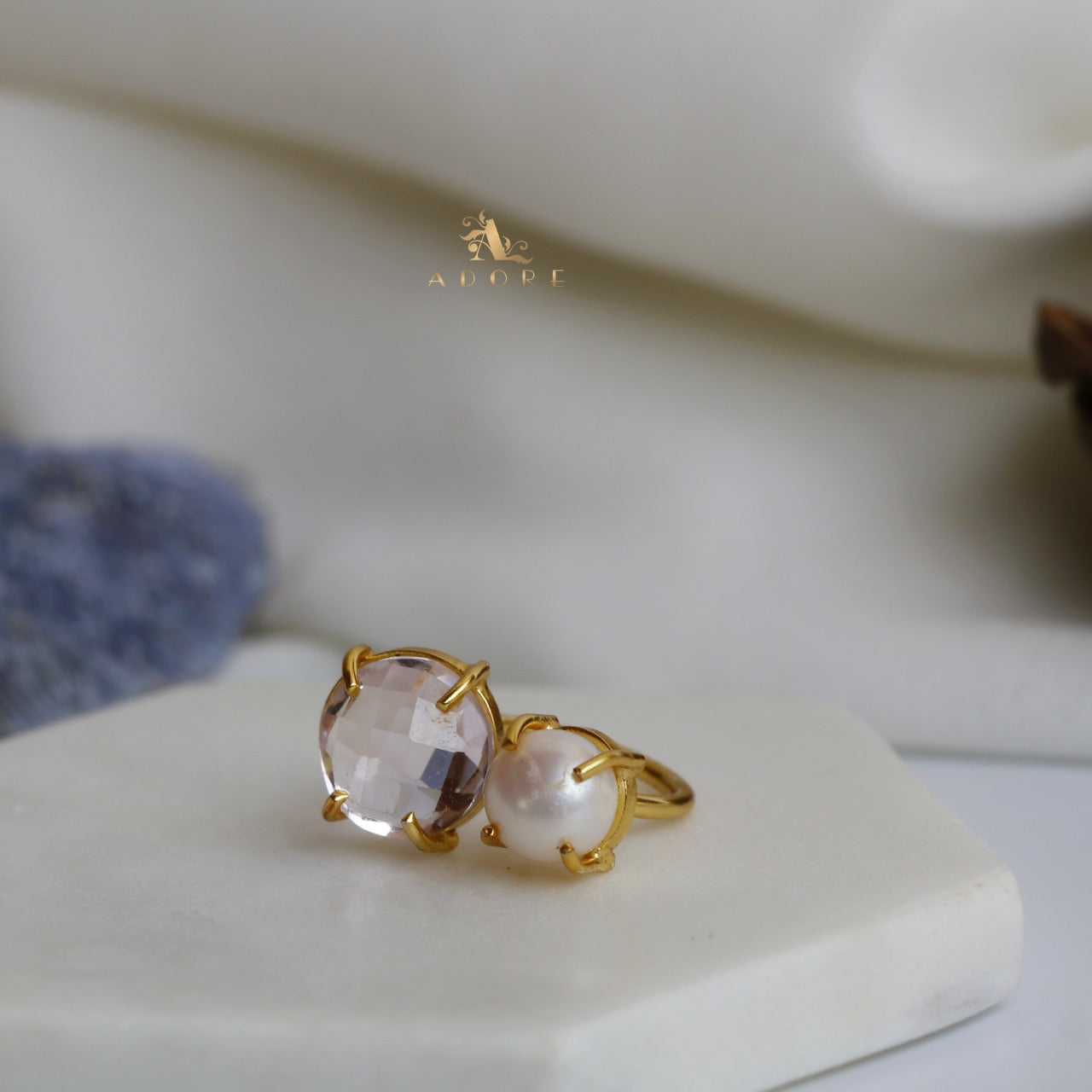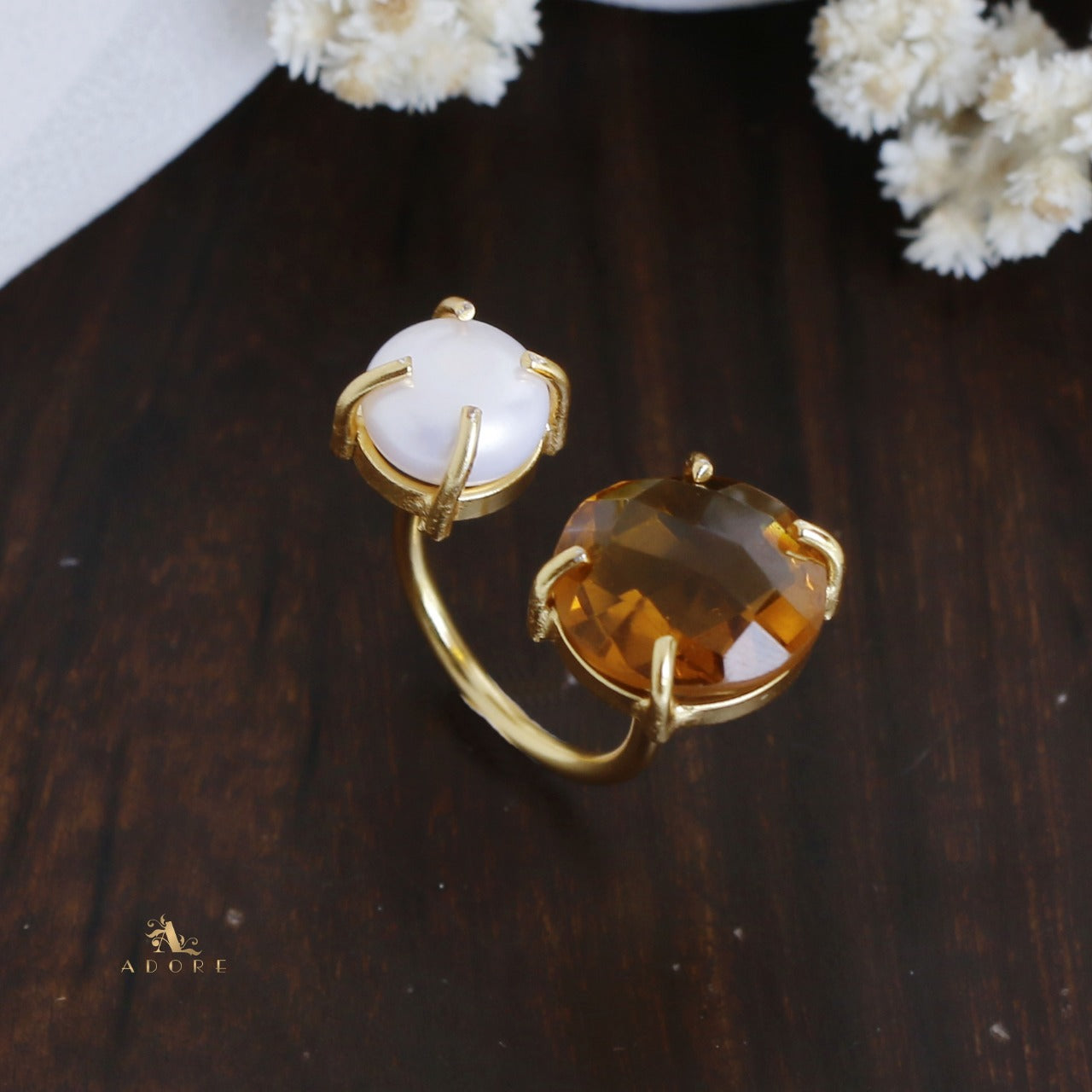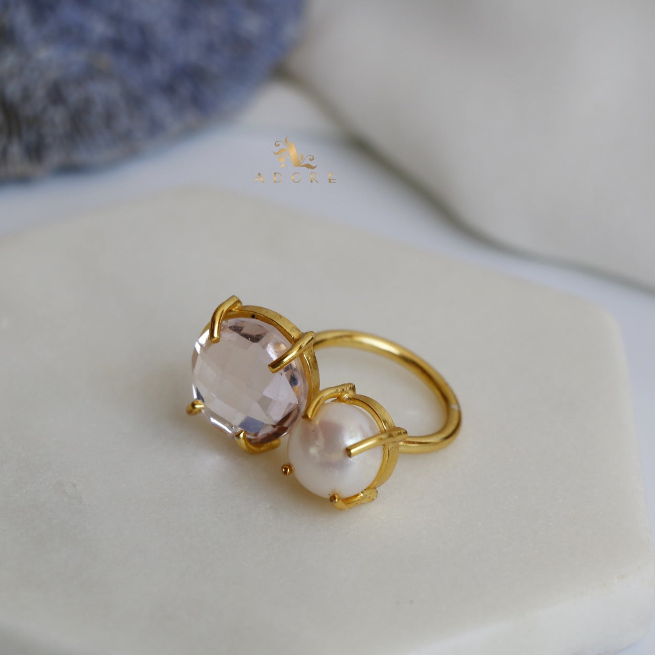 Glossy Stone Plus Pearl Ring (Colour Option)
