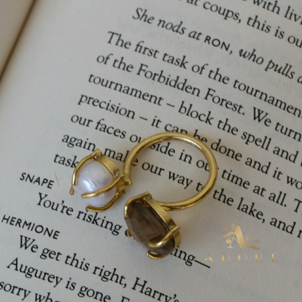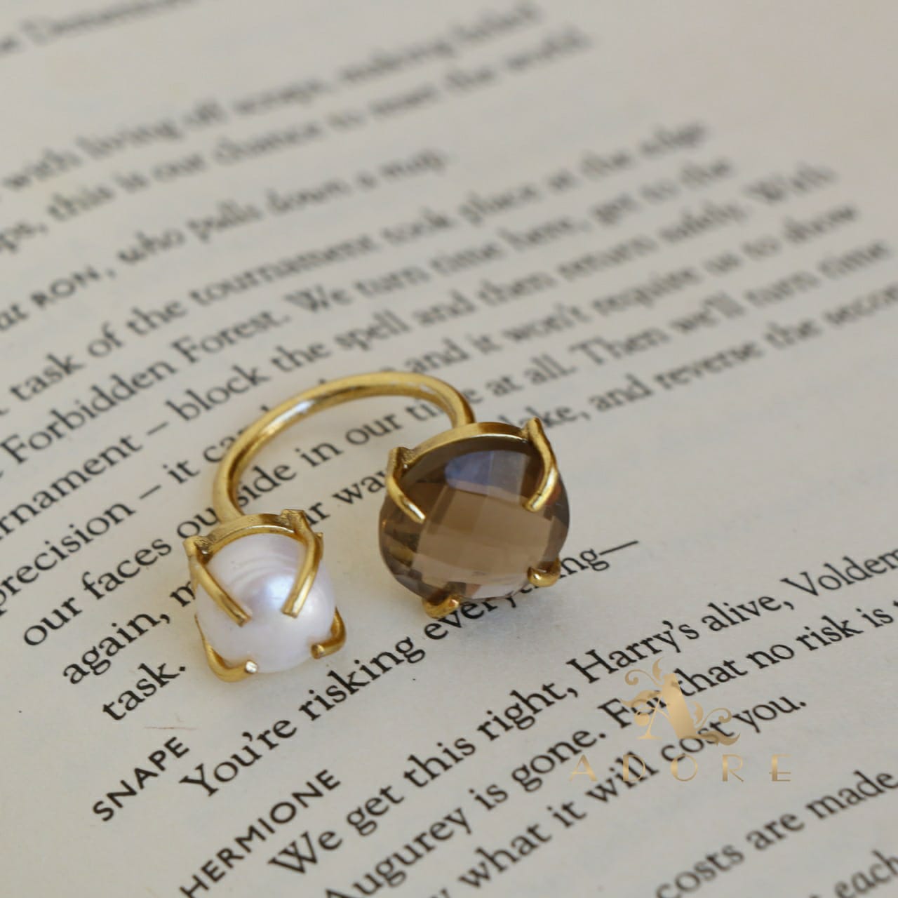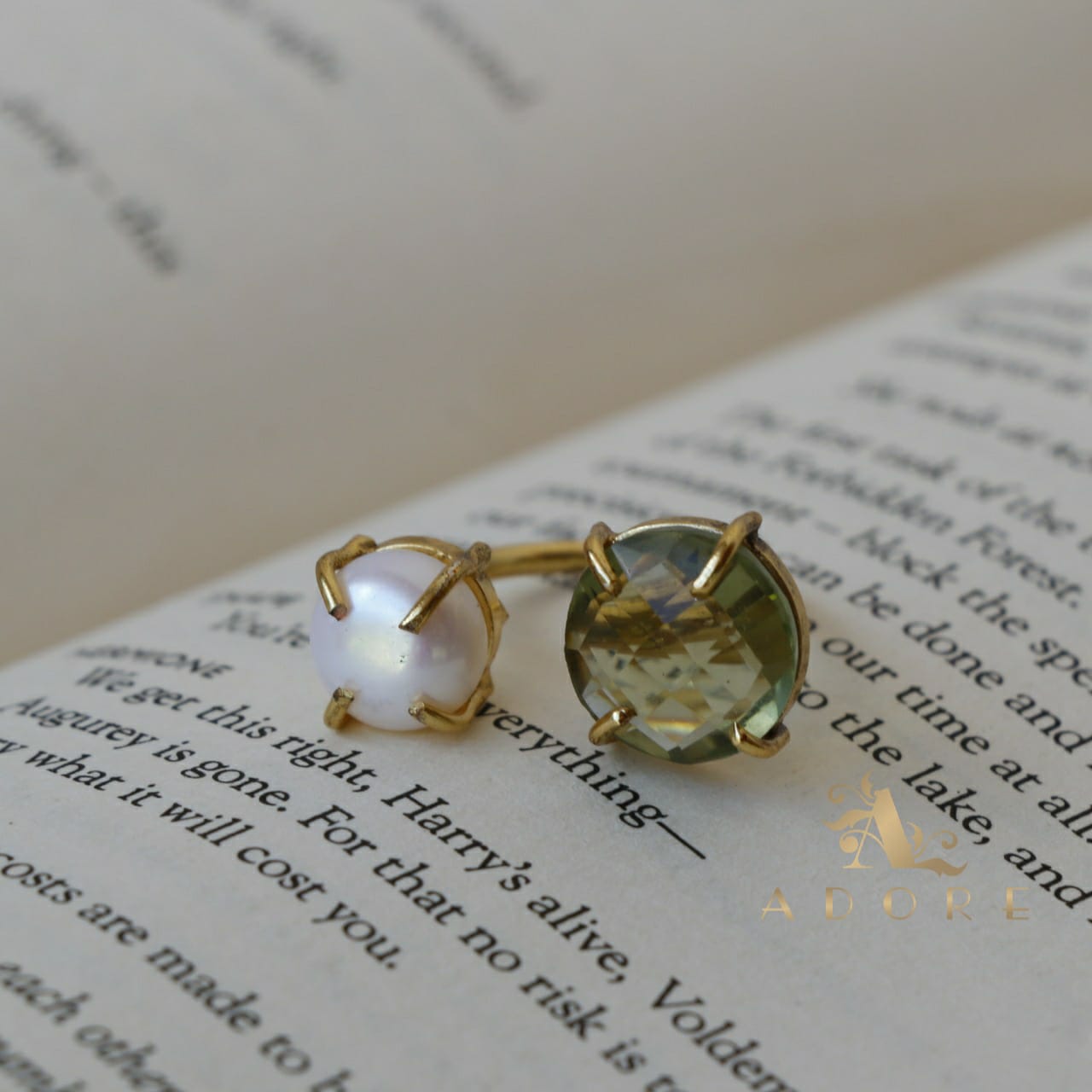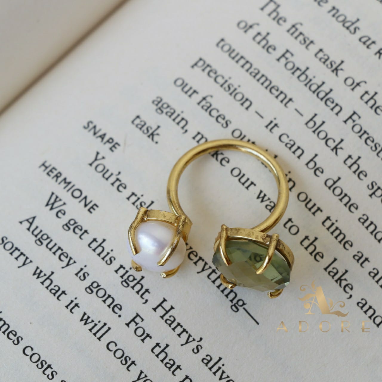 Glossy Stone Plus Pearl Ring (Colour Option)