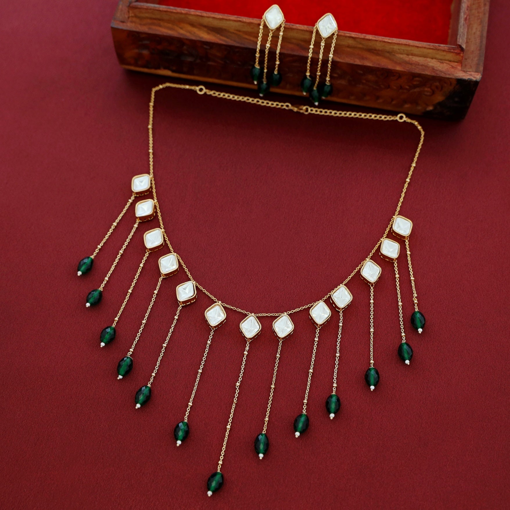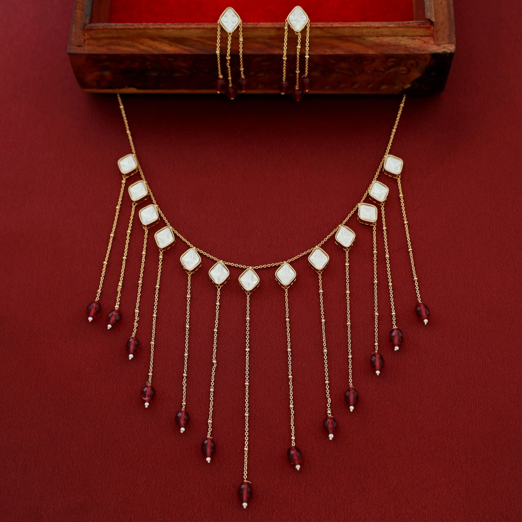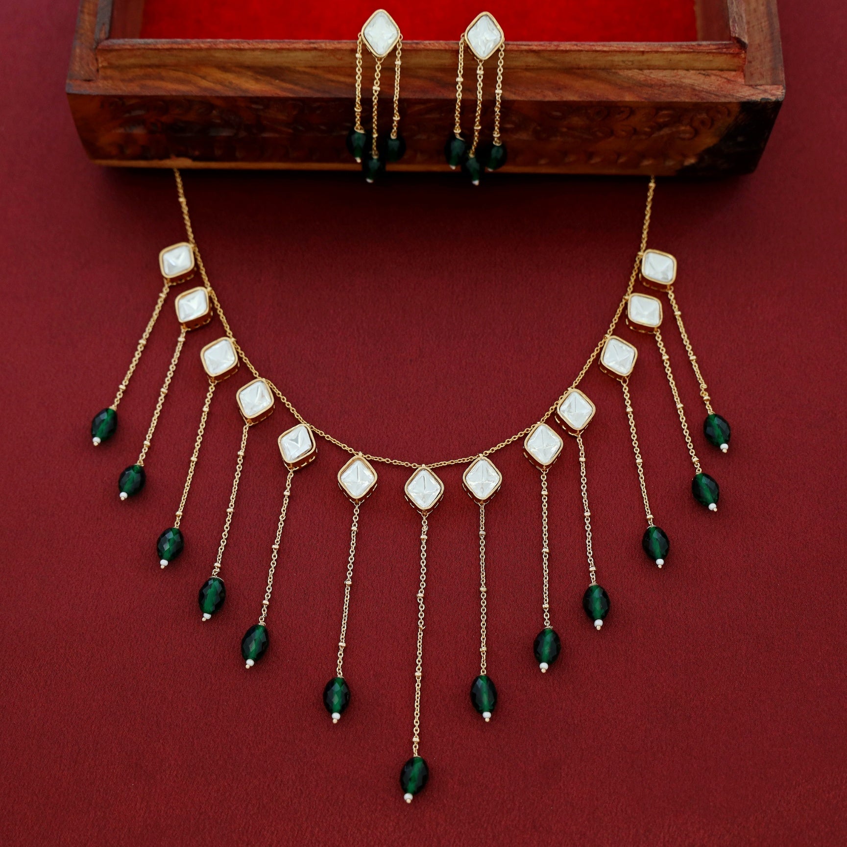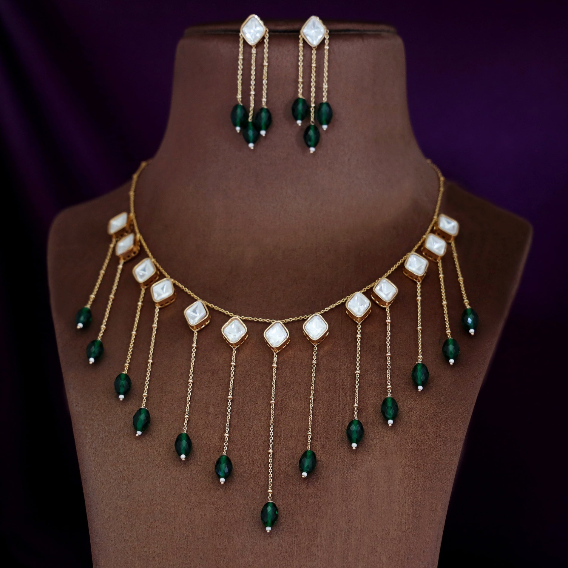 Be the first to review “Micah Kundan Hanging Chain Beaded Neckpiece With Earring”