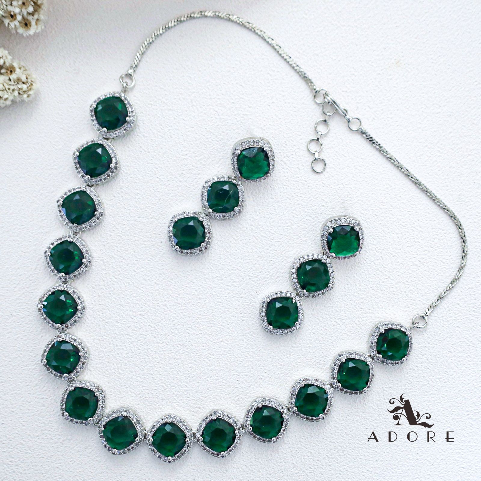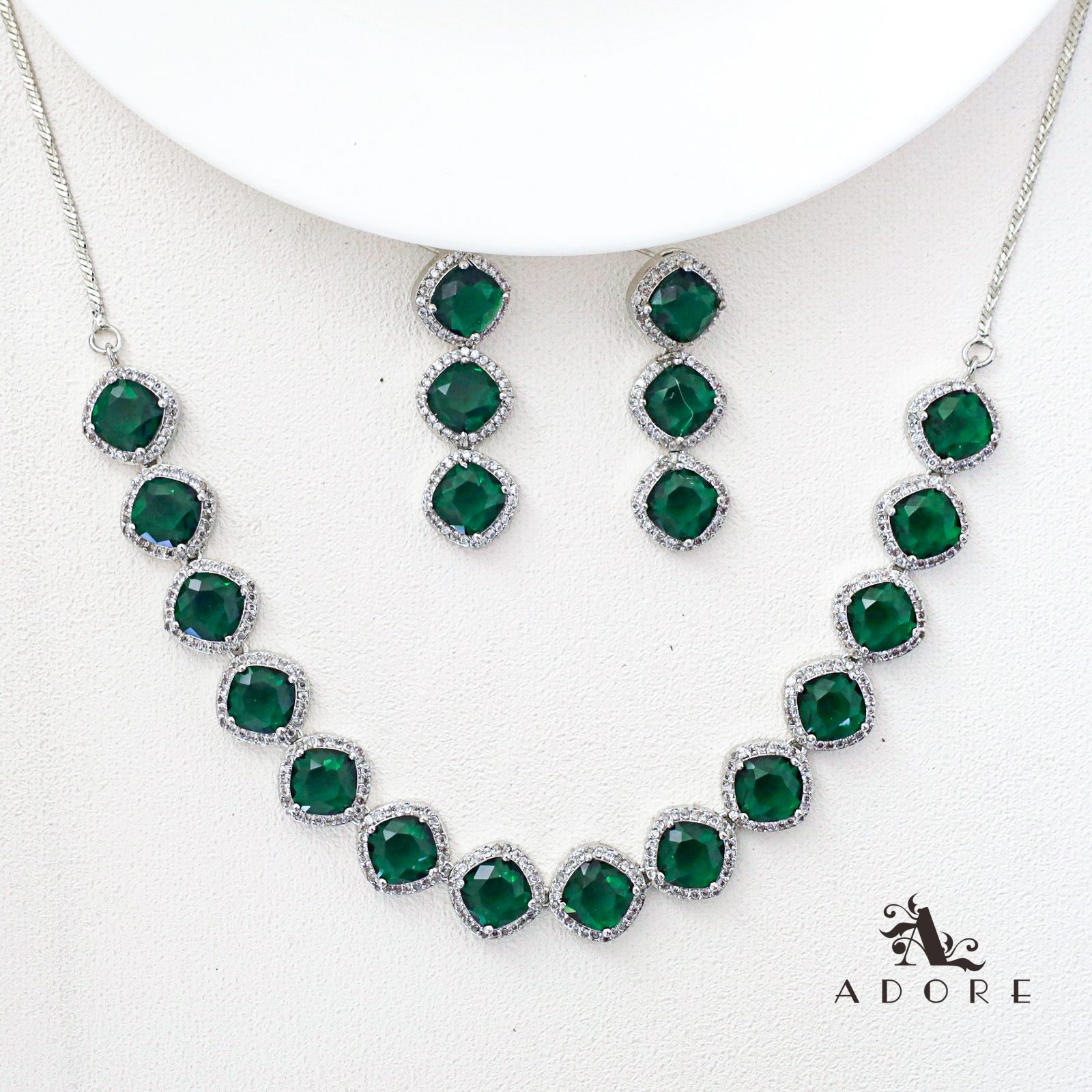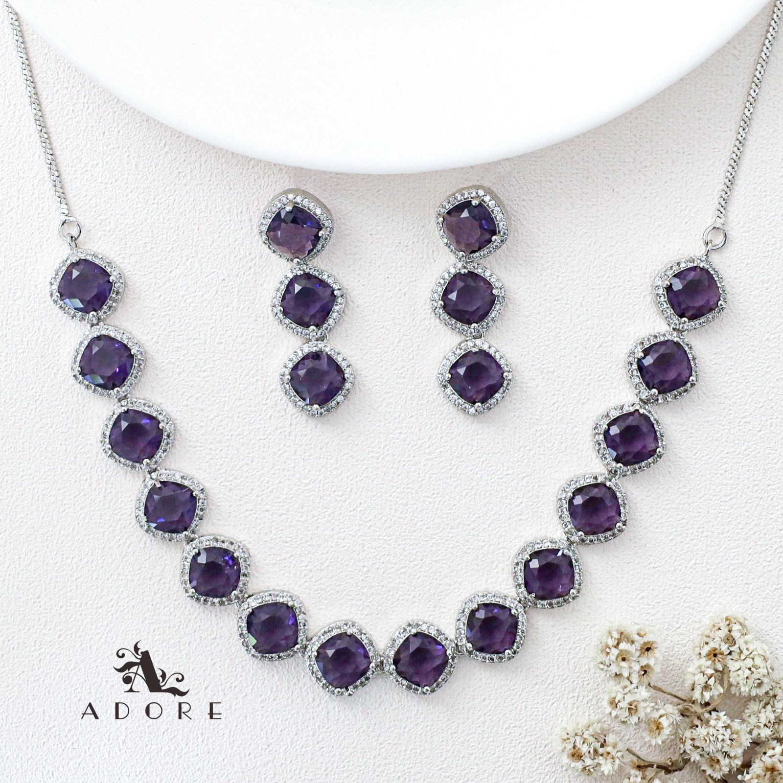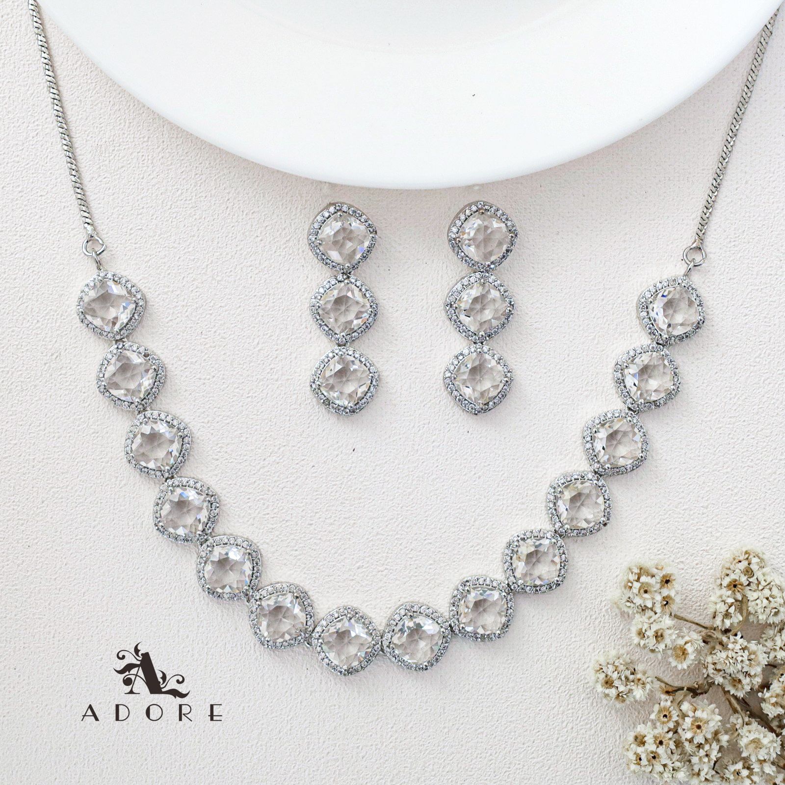 Parineeti Silver Glossy AD Neckpiece With Earring