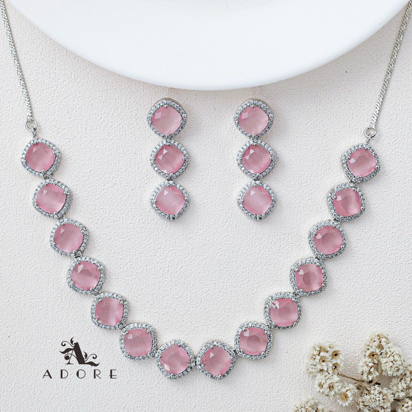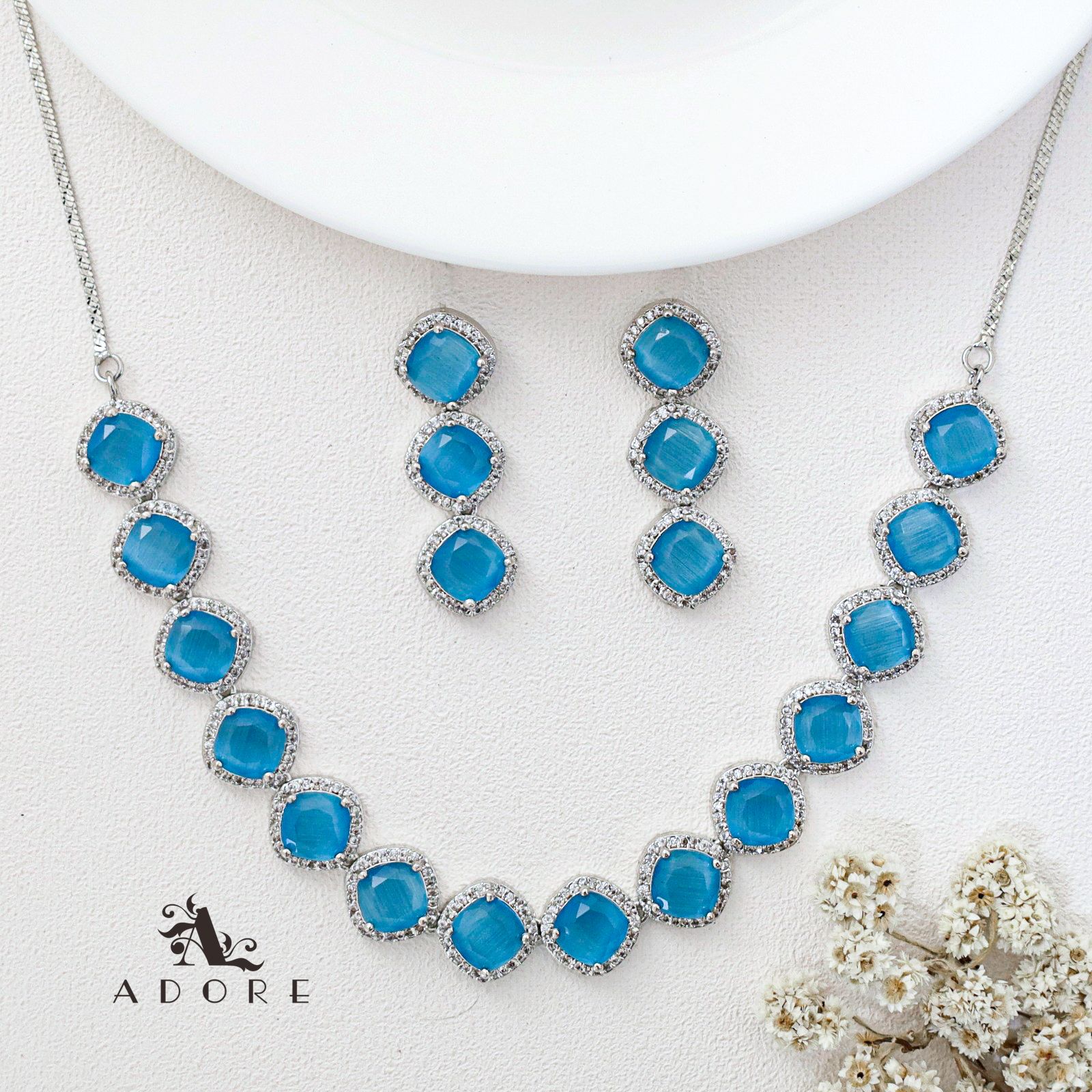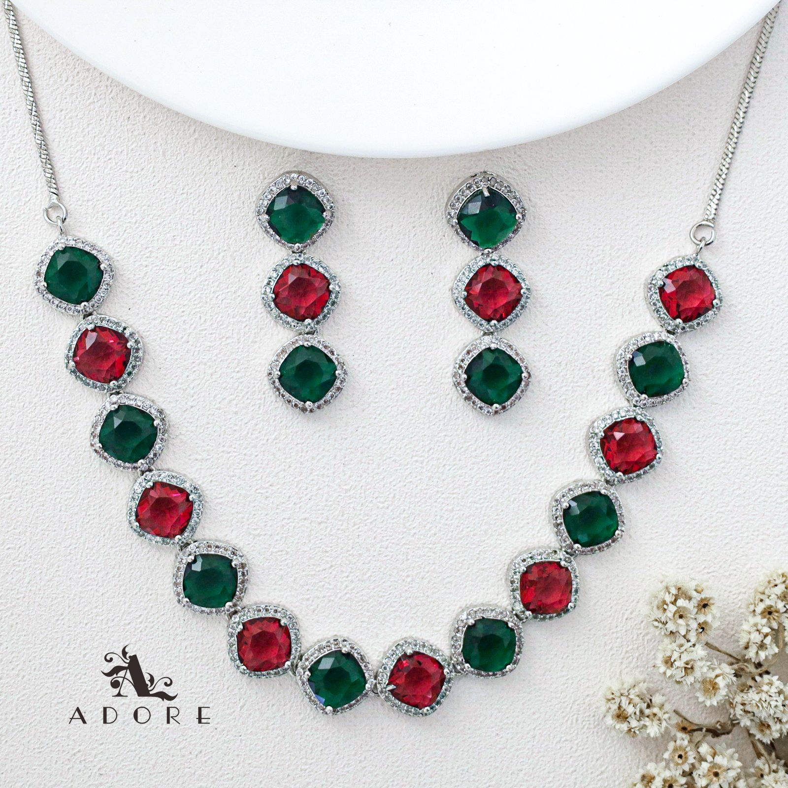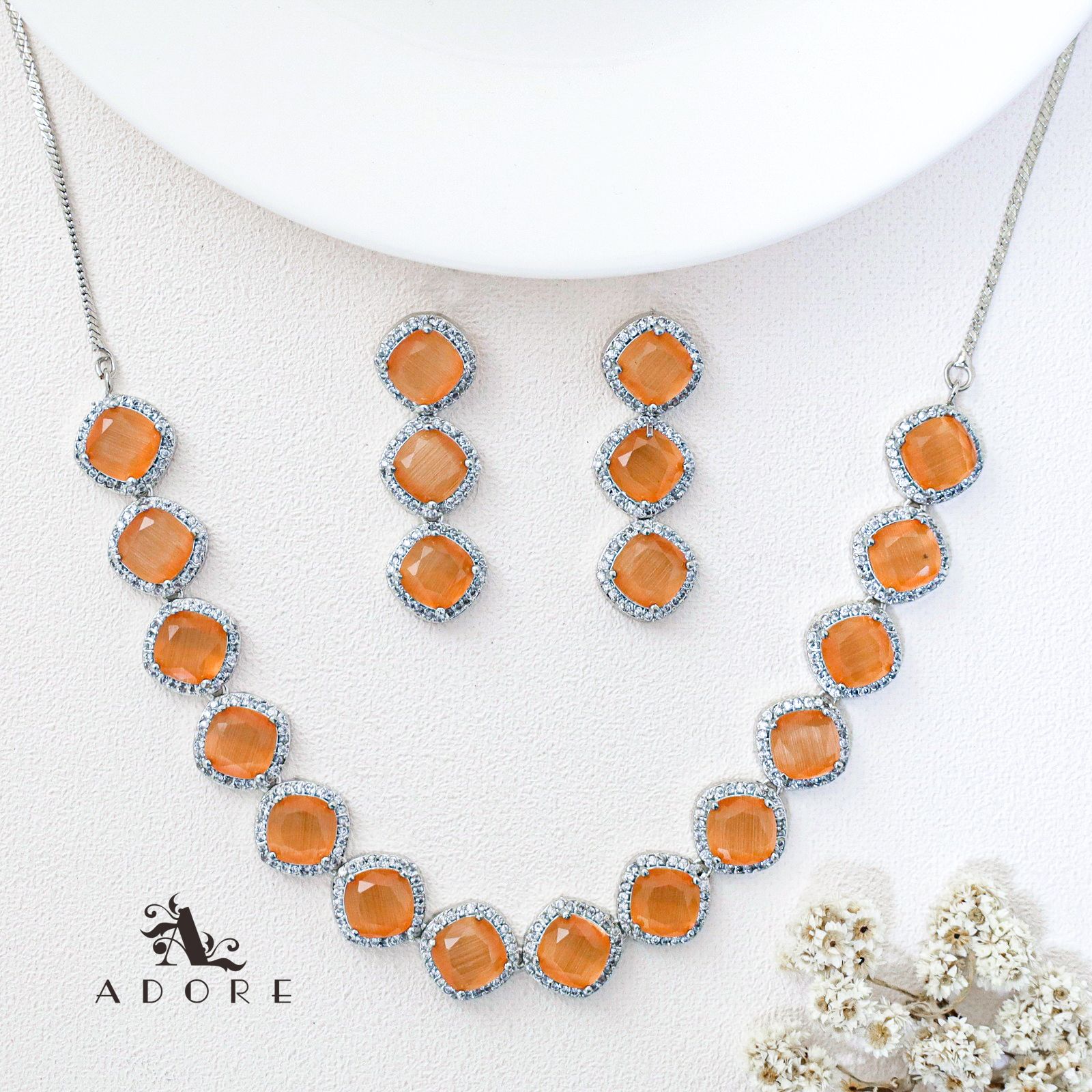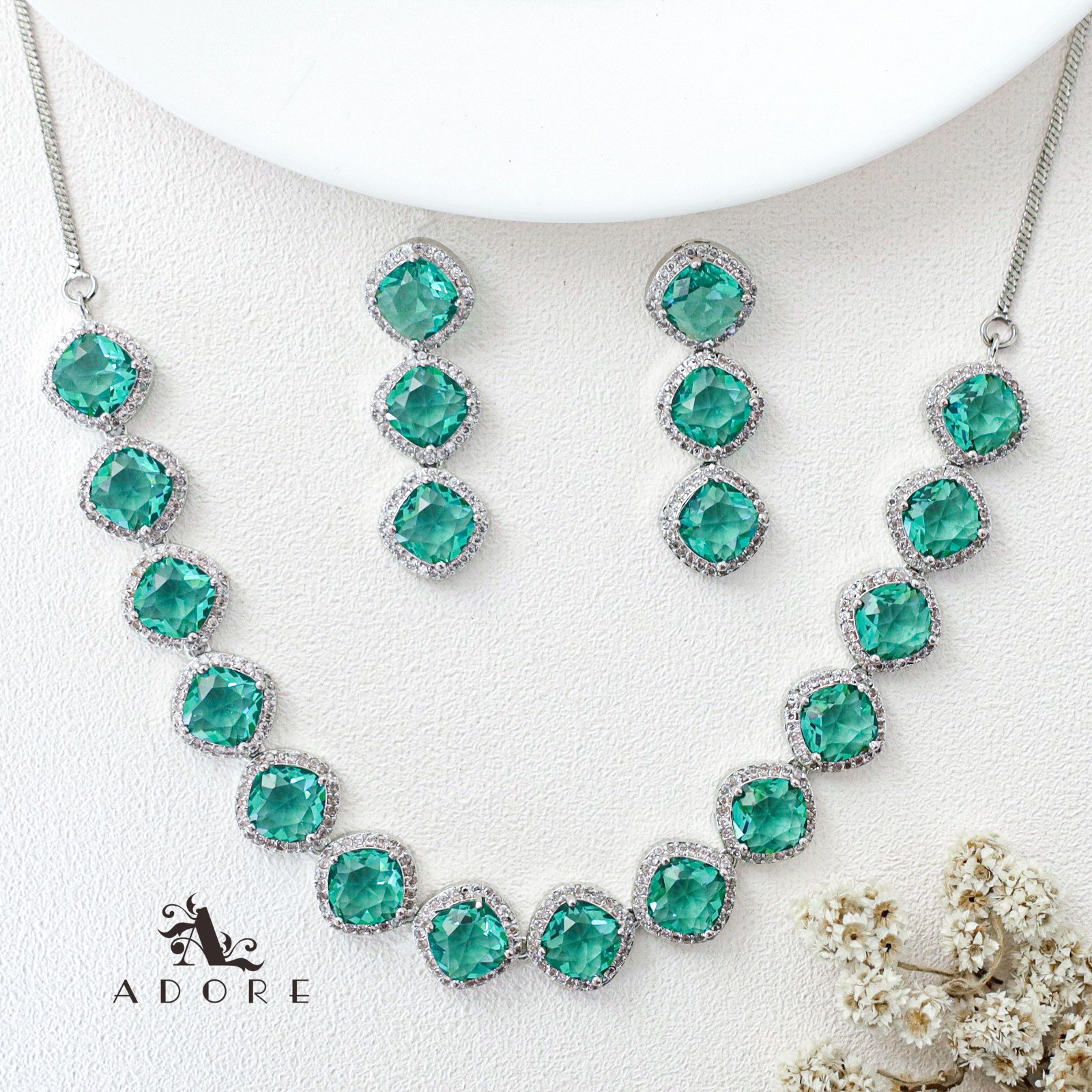 Parineeti Silver Glossy AD Neckpiece With Earring