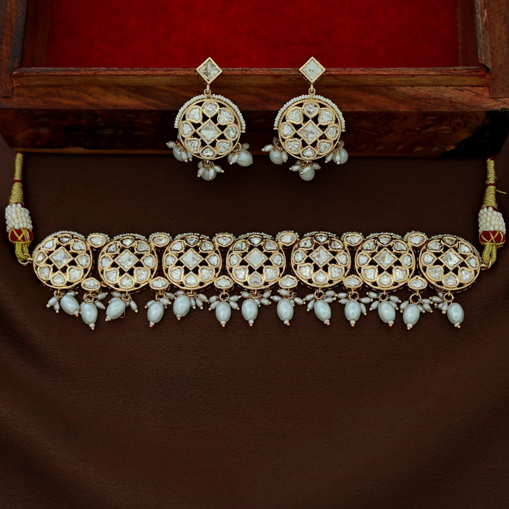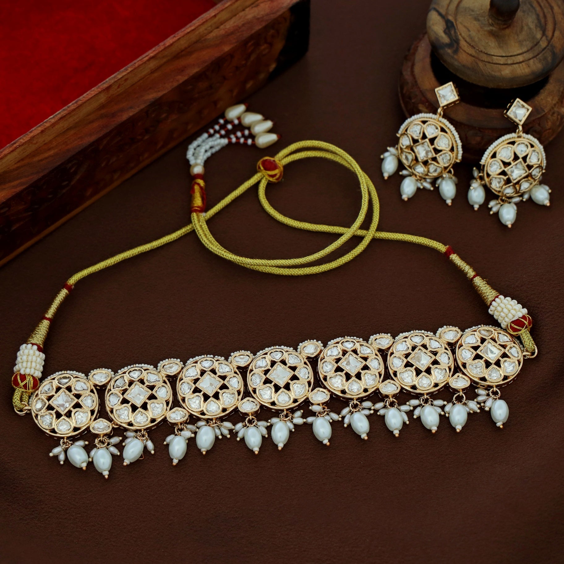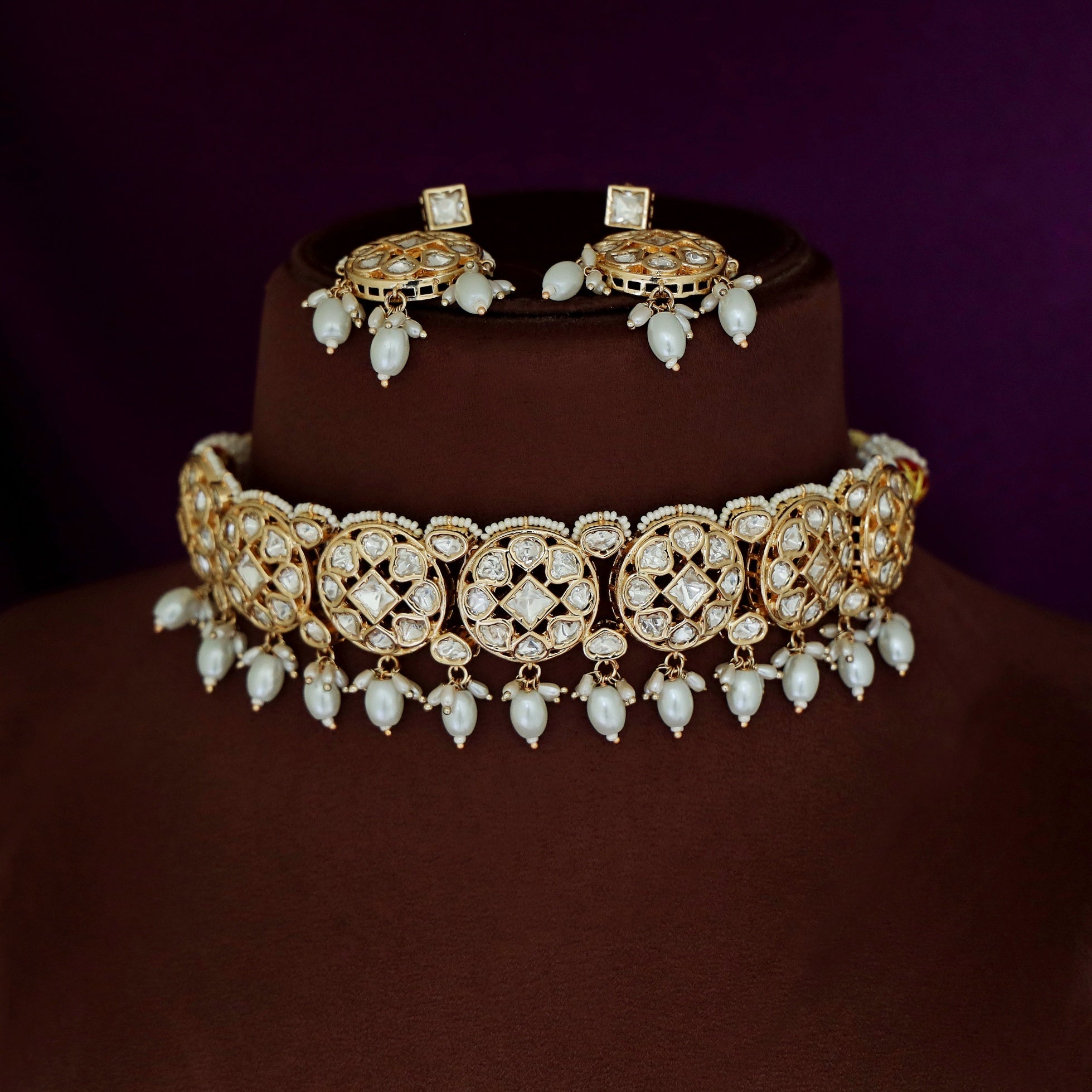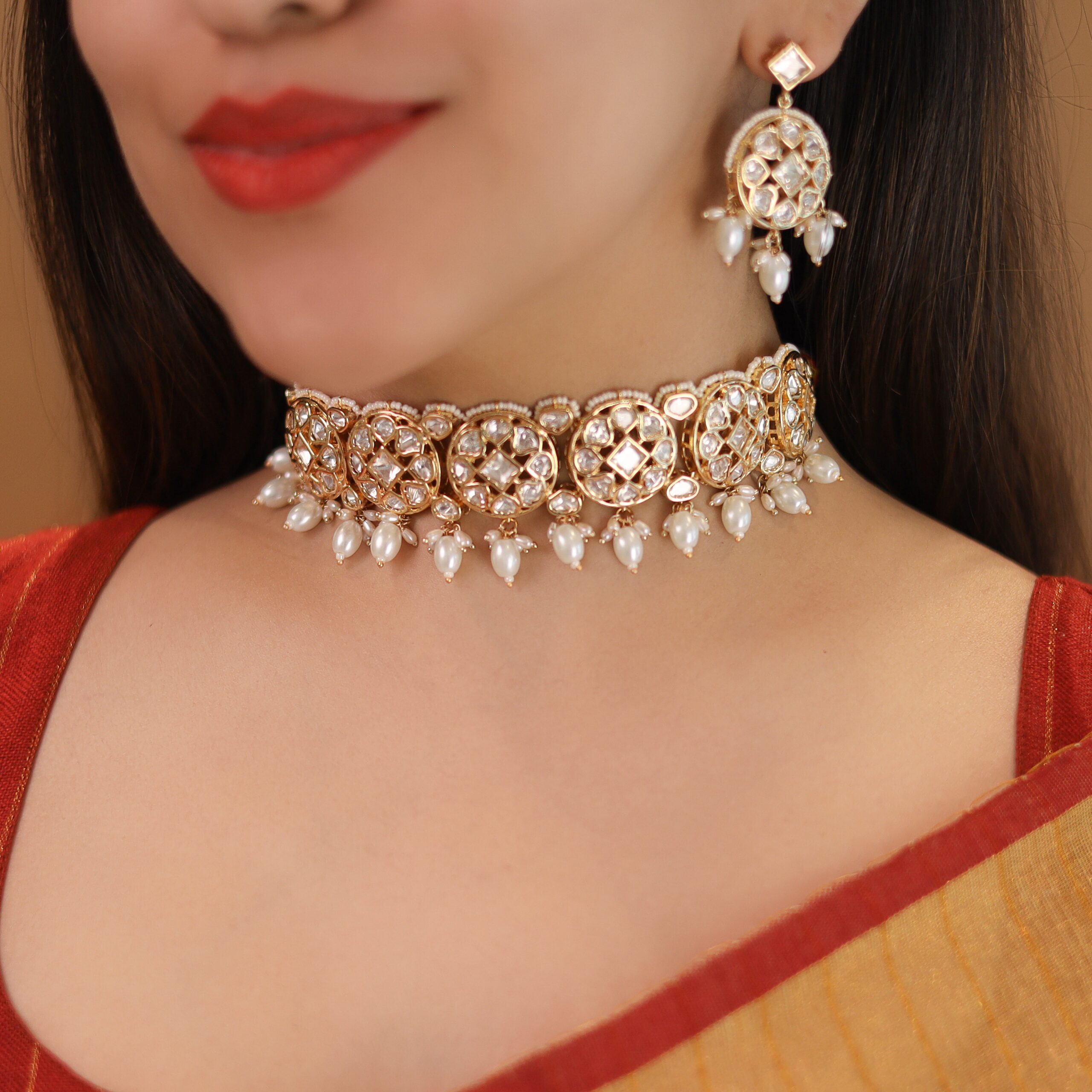 Premium Anagha Kundan Pearl Choker With Earring