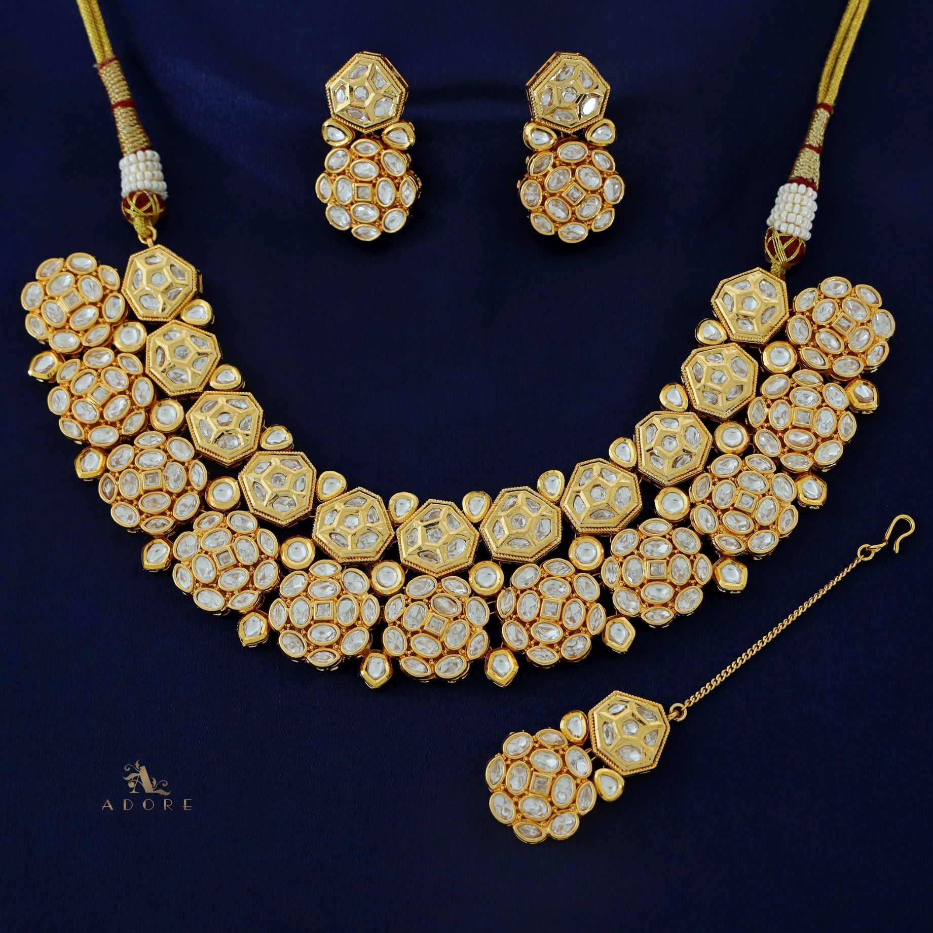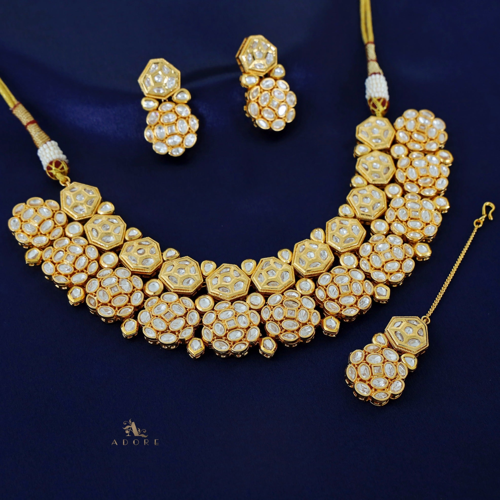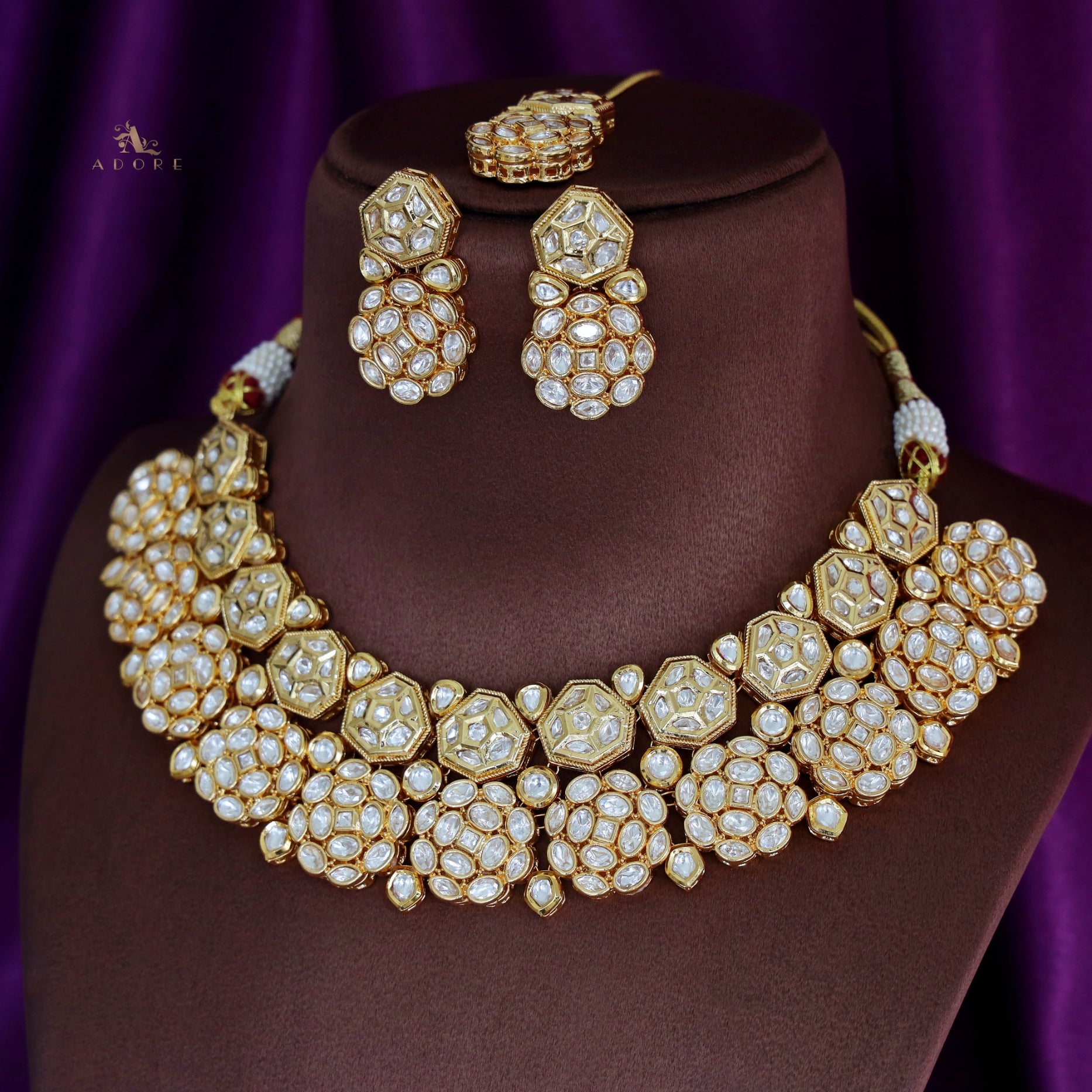 Premium Magdalen Kundan Neckpiece With Earring + TIkka