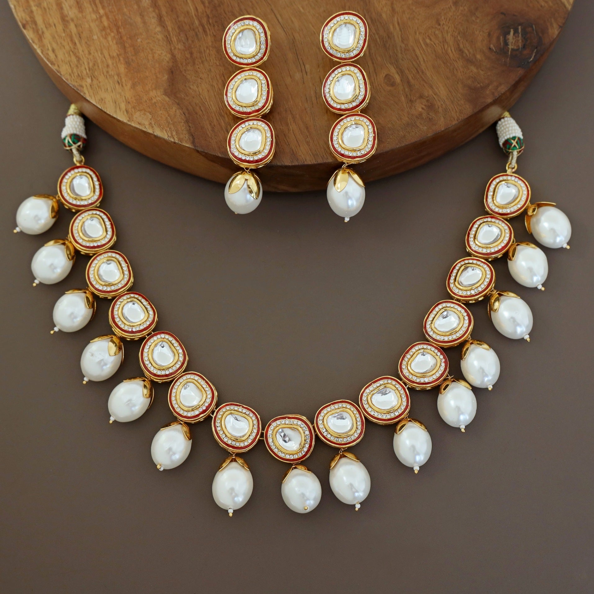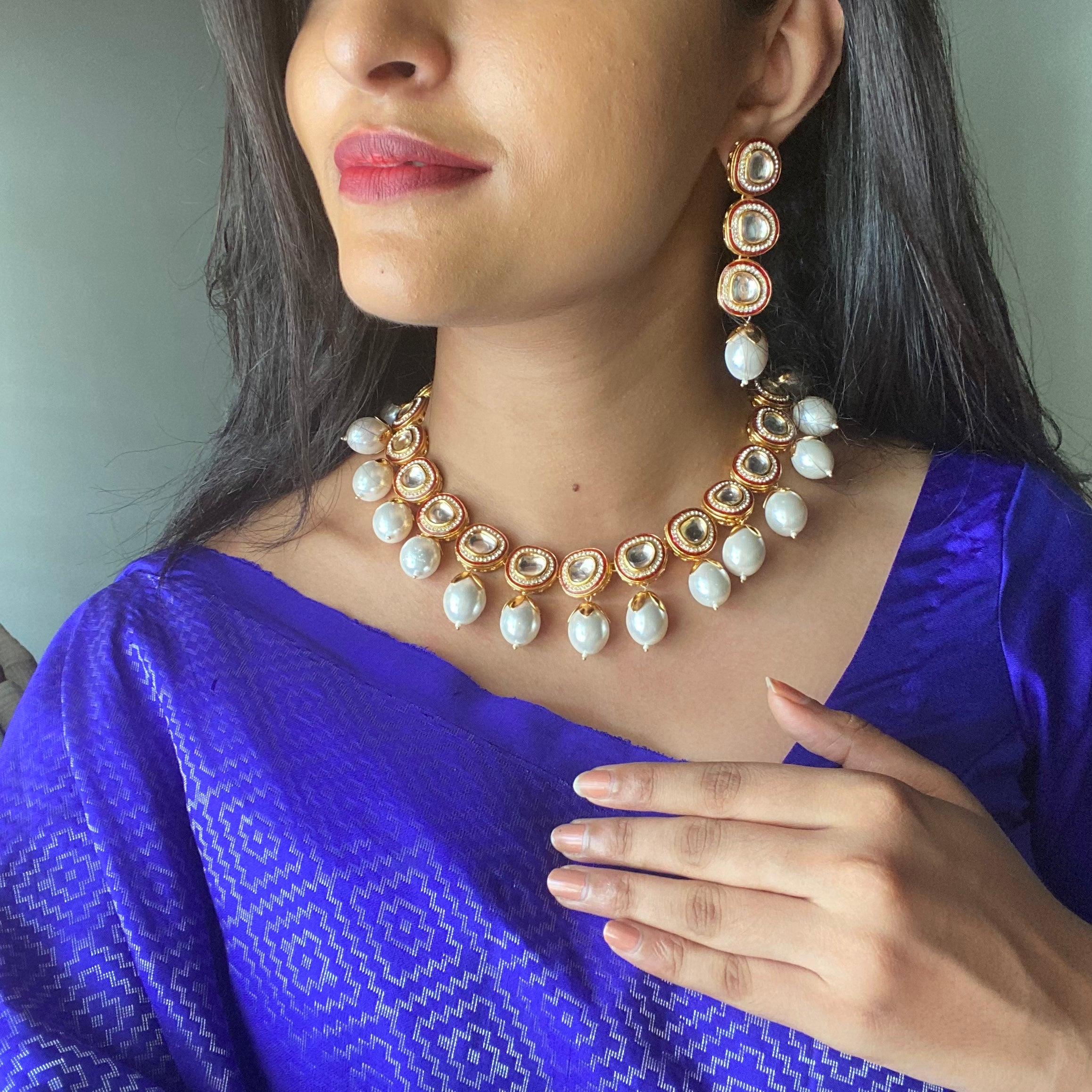 Premium Pearl Bishakha Kundan Neckpiece with Stud