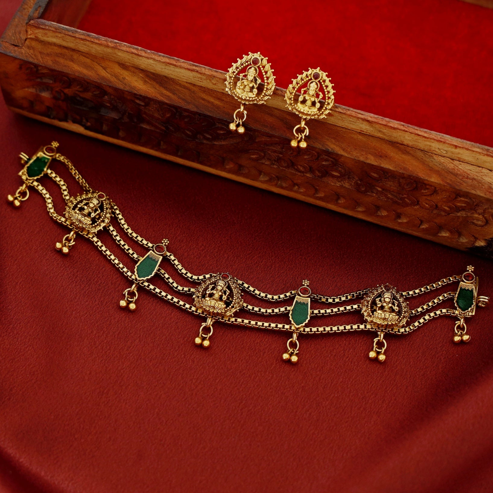 Rakshita Devi 3 Layer Palakka Choker With Earring