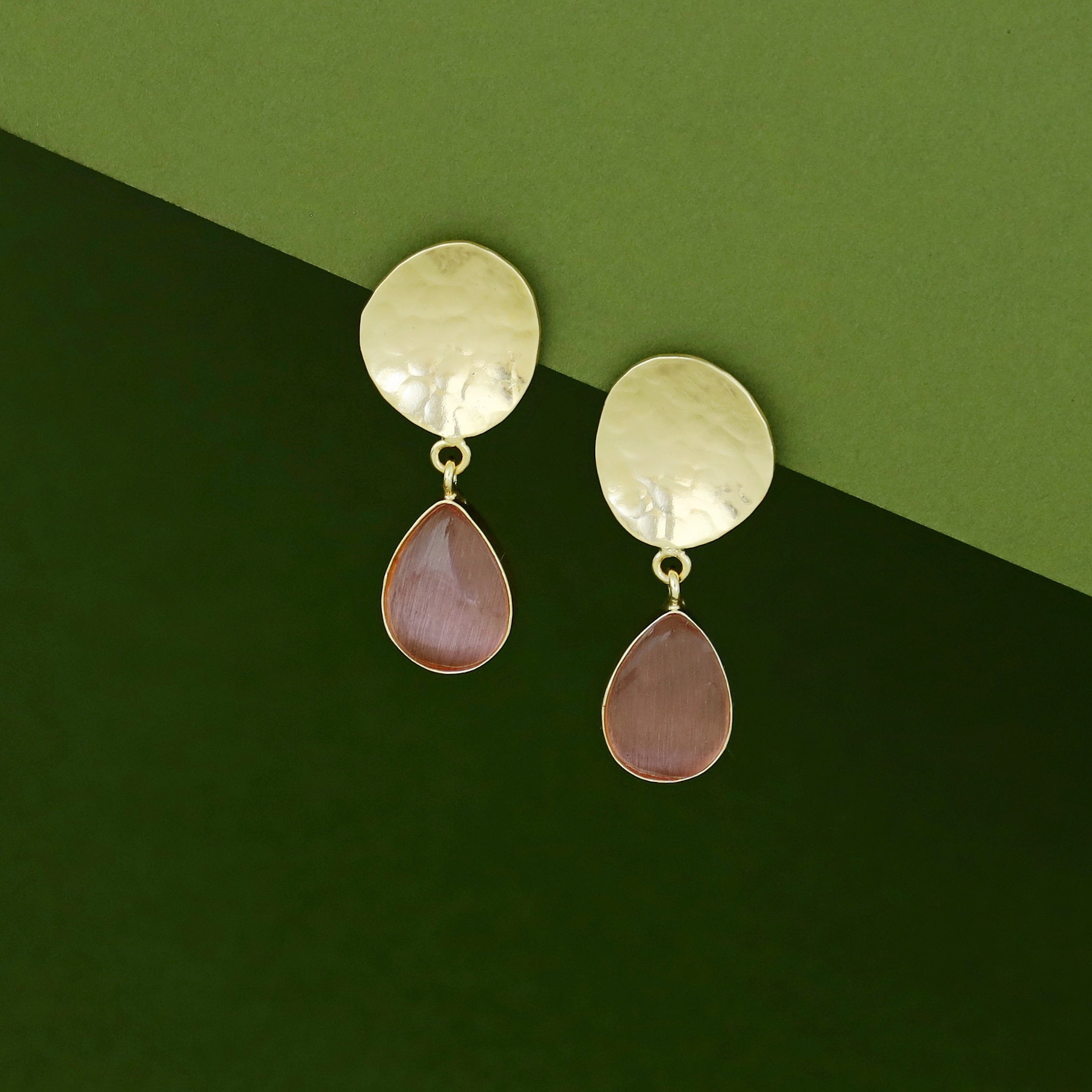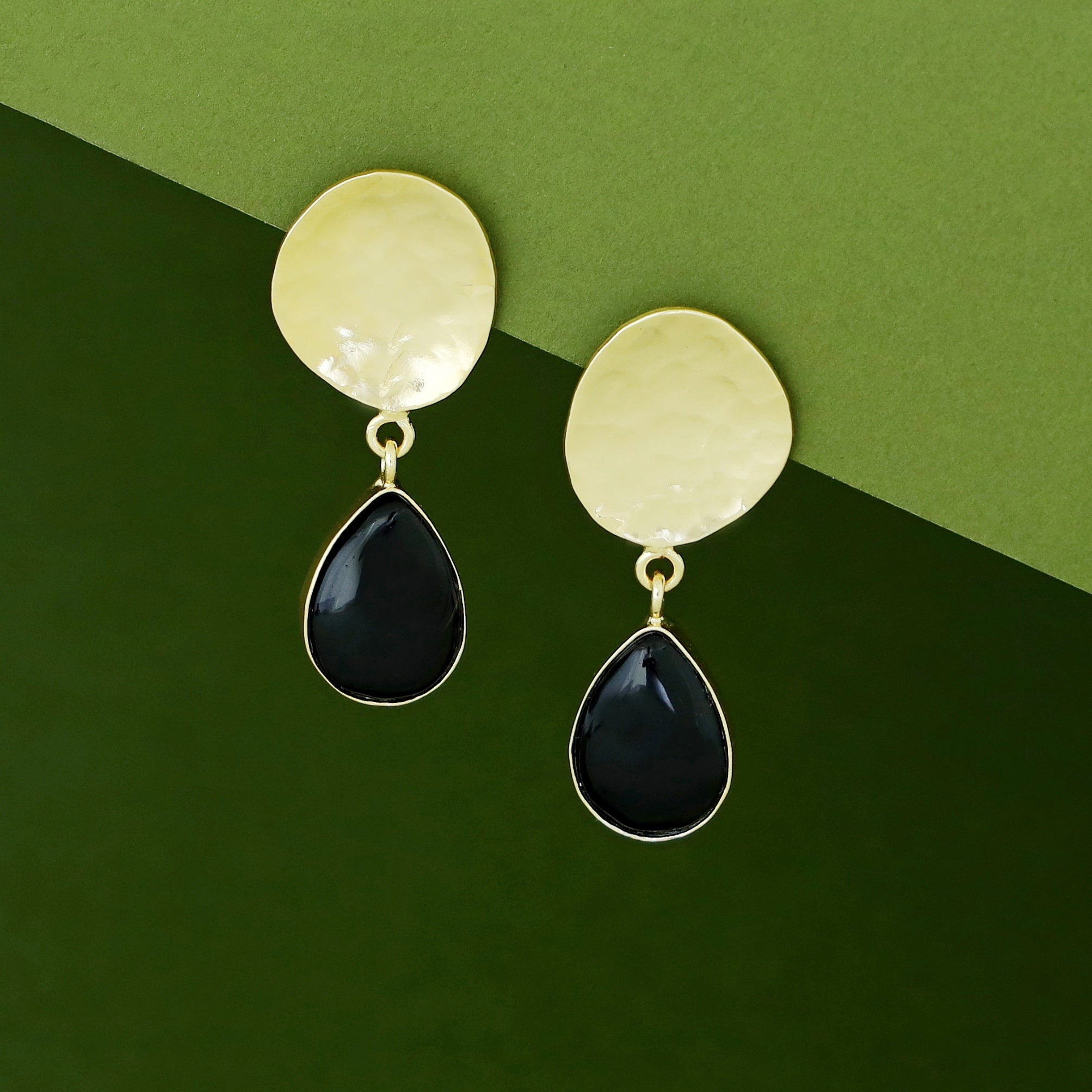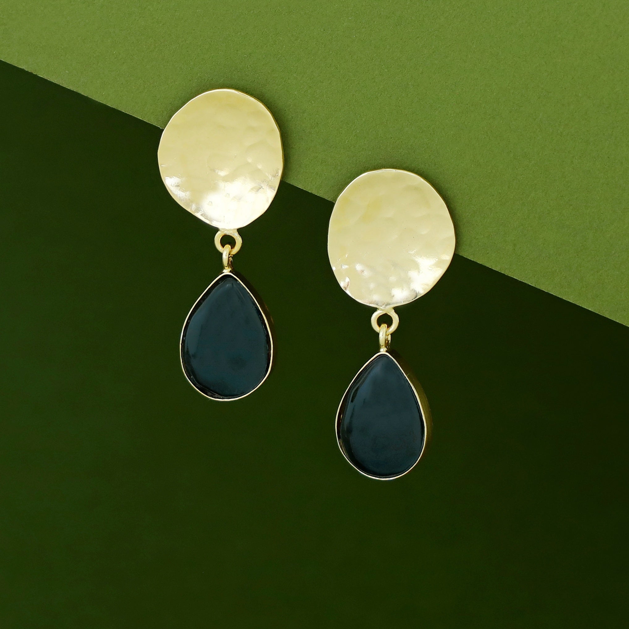 Rosie Golden Hammered Glossy Stone Drop Earring