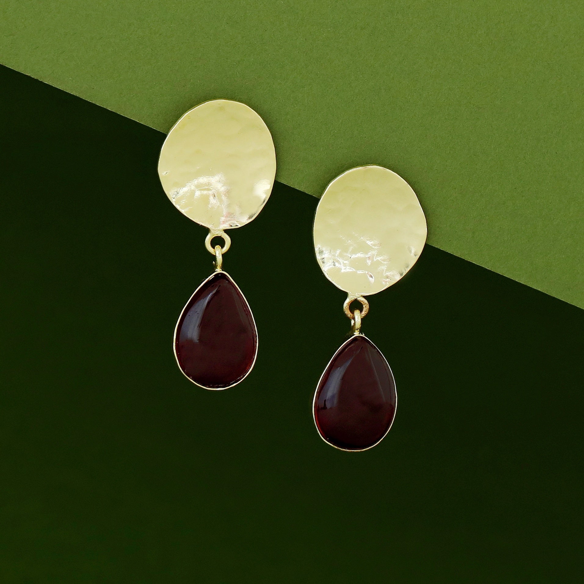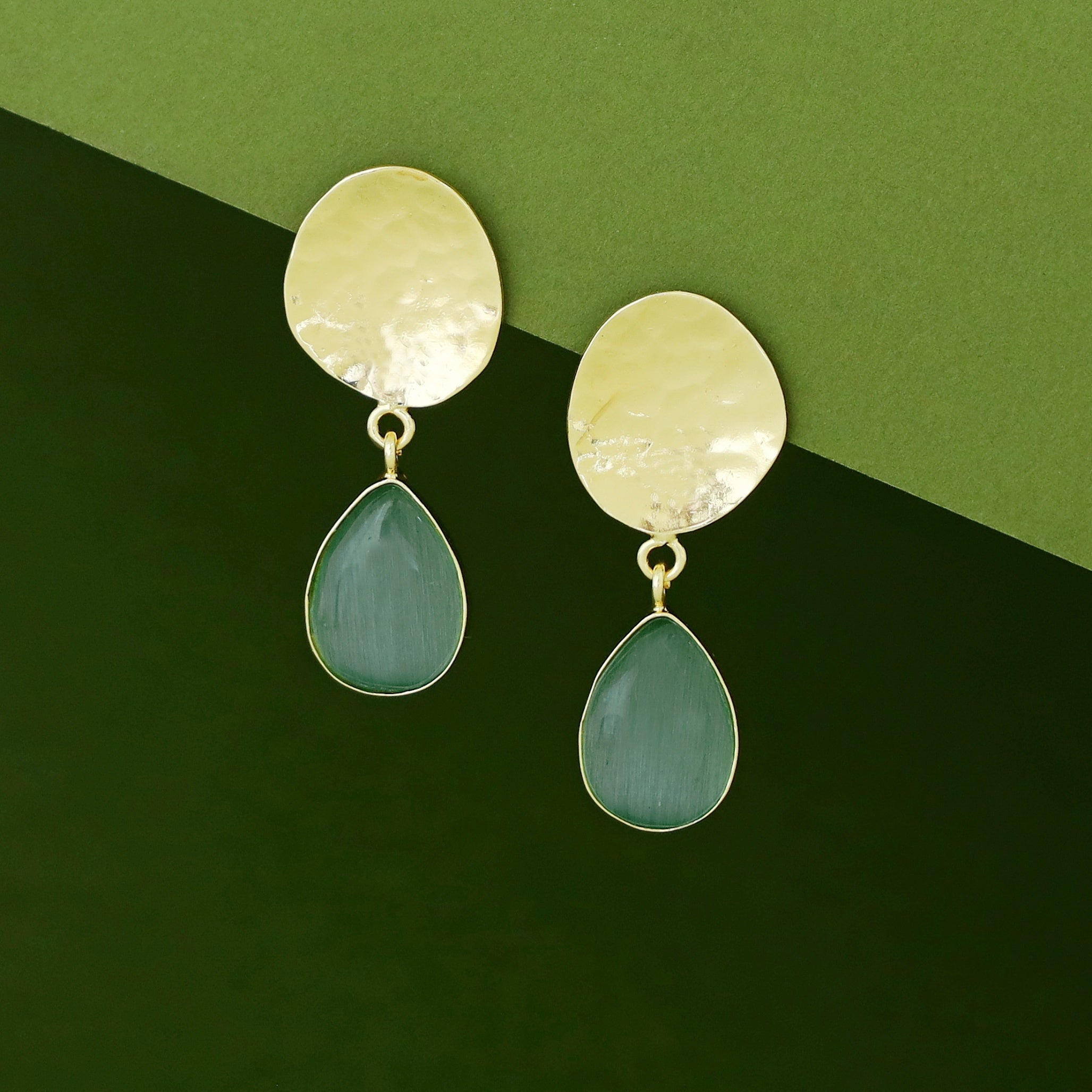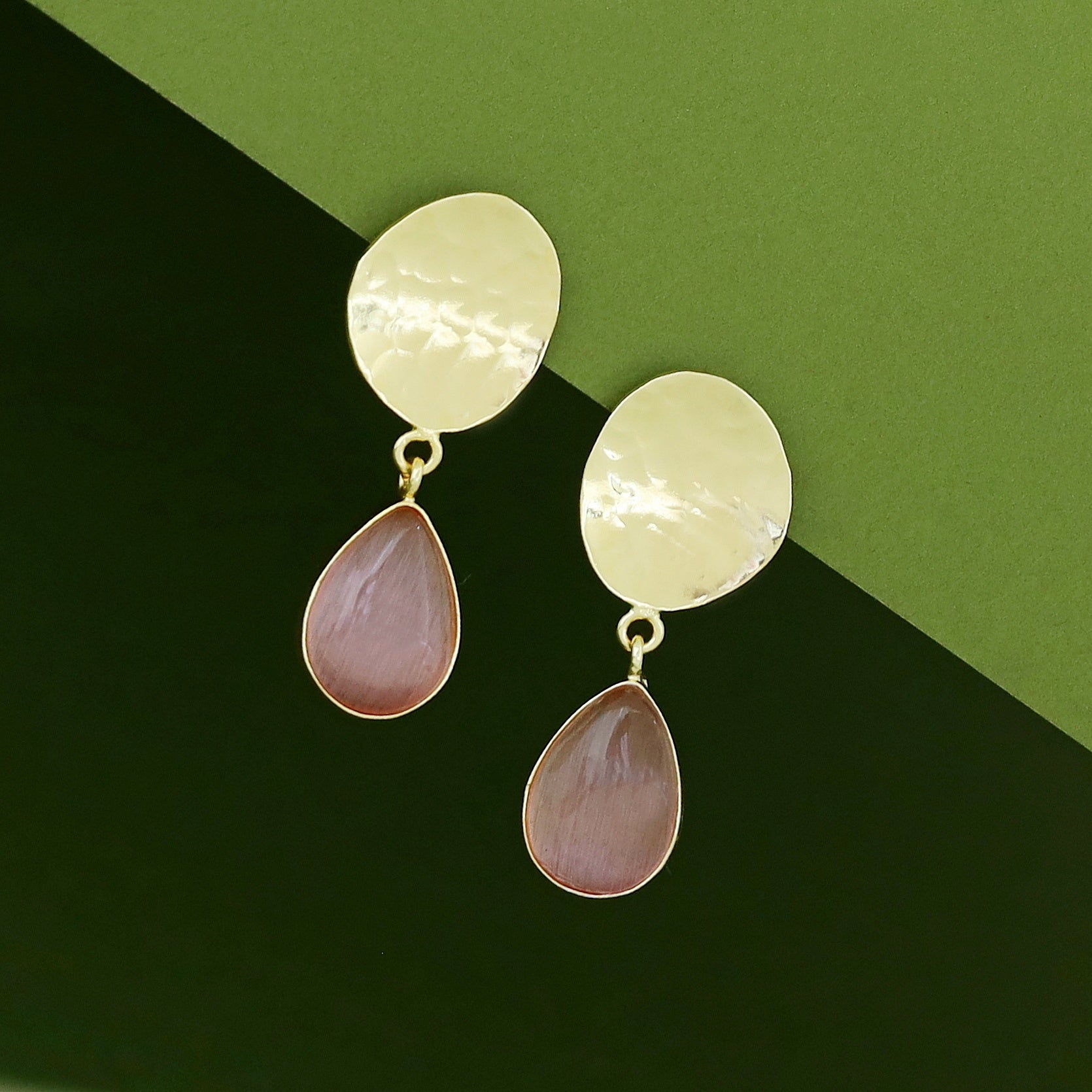 Rosie Golden Hammered Glossy Stone Drop Earring