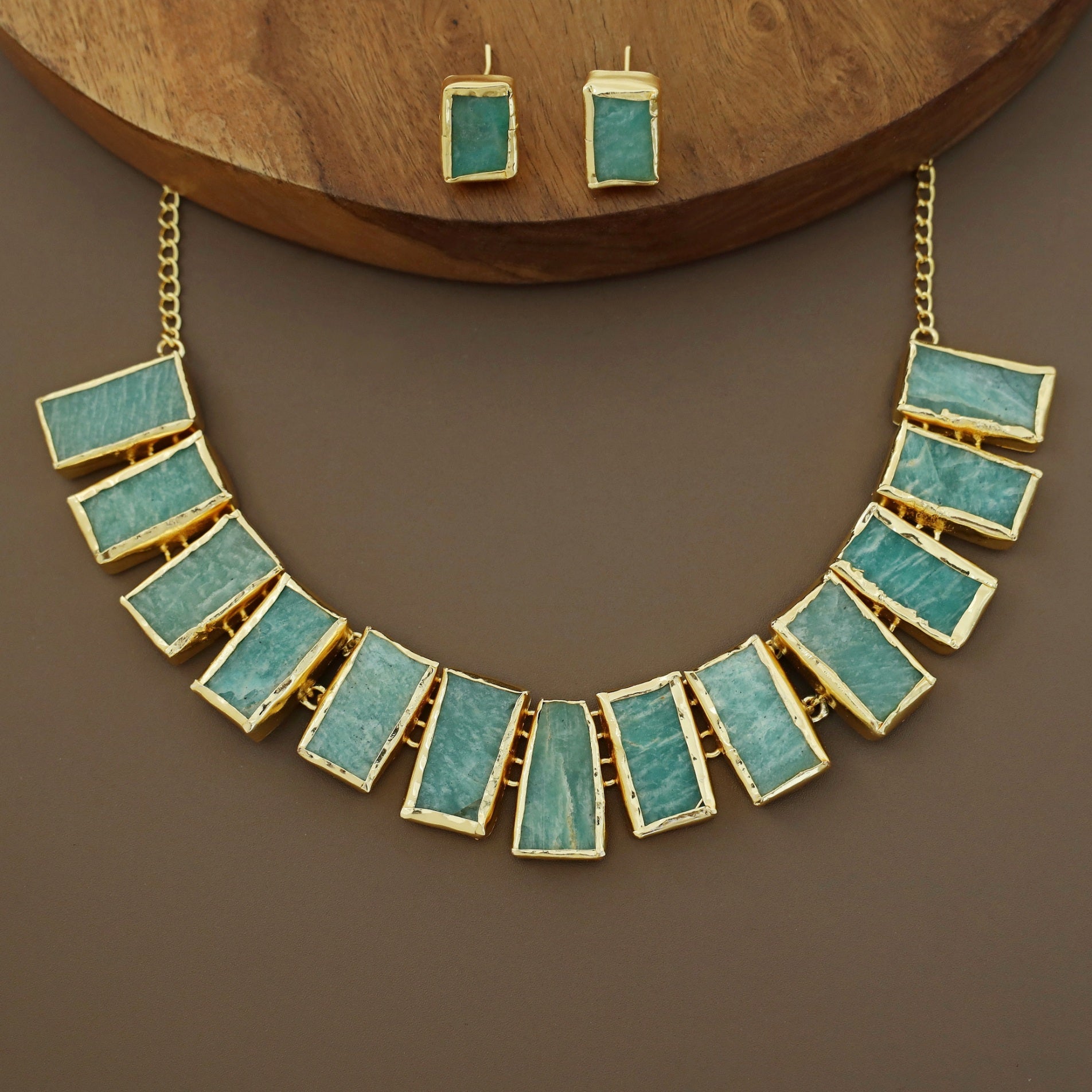 Be the first to review “Rushika Rectangle Raw Stone Short Neckpiece With Stud”