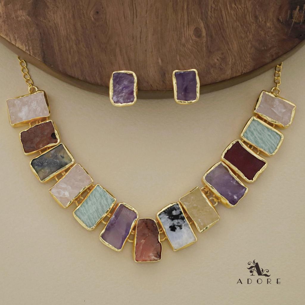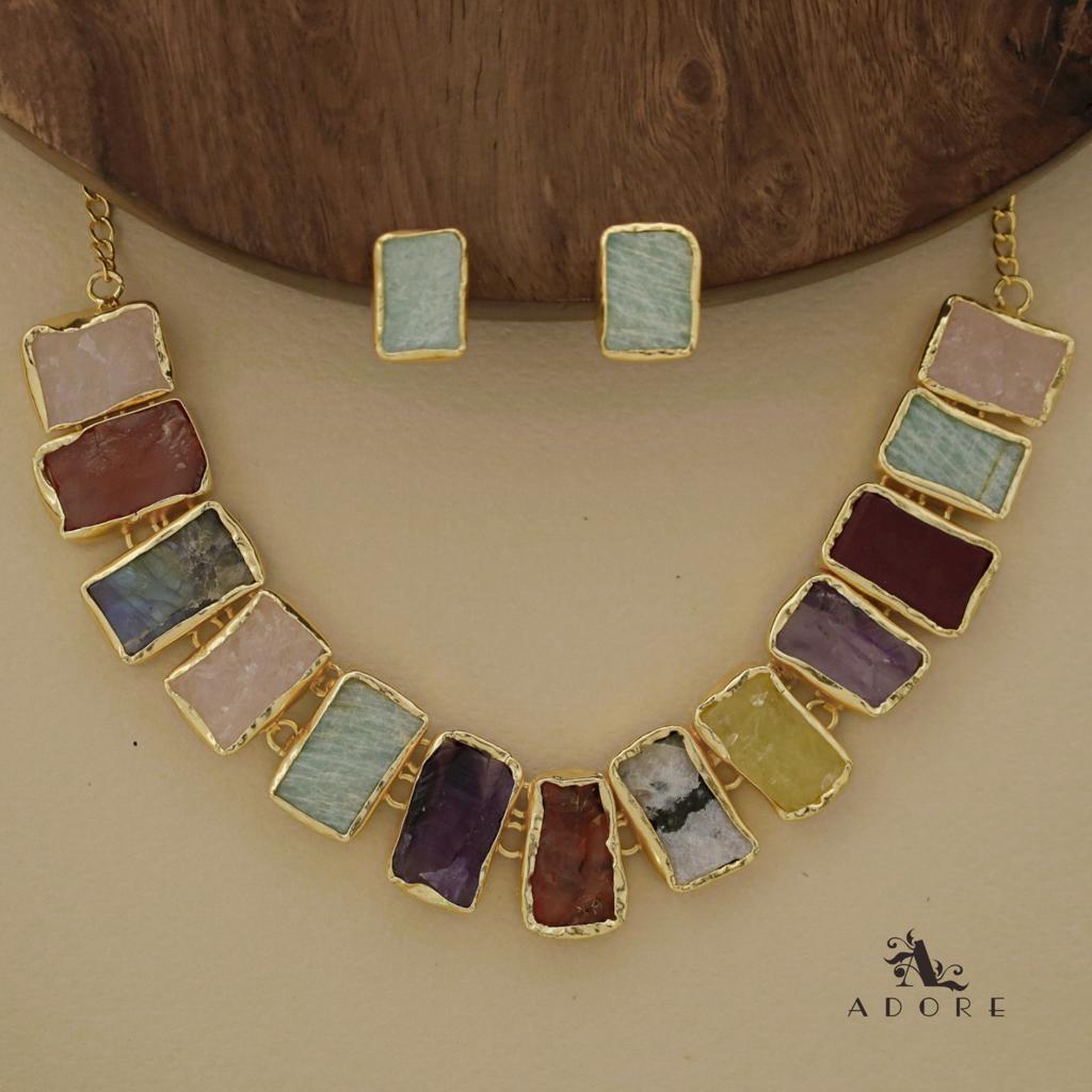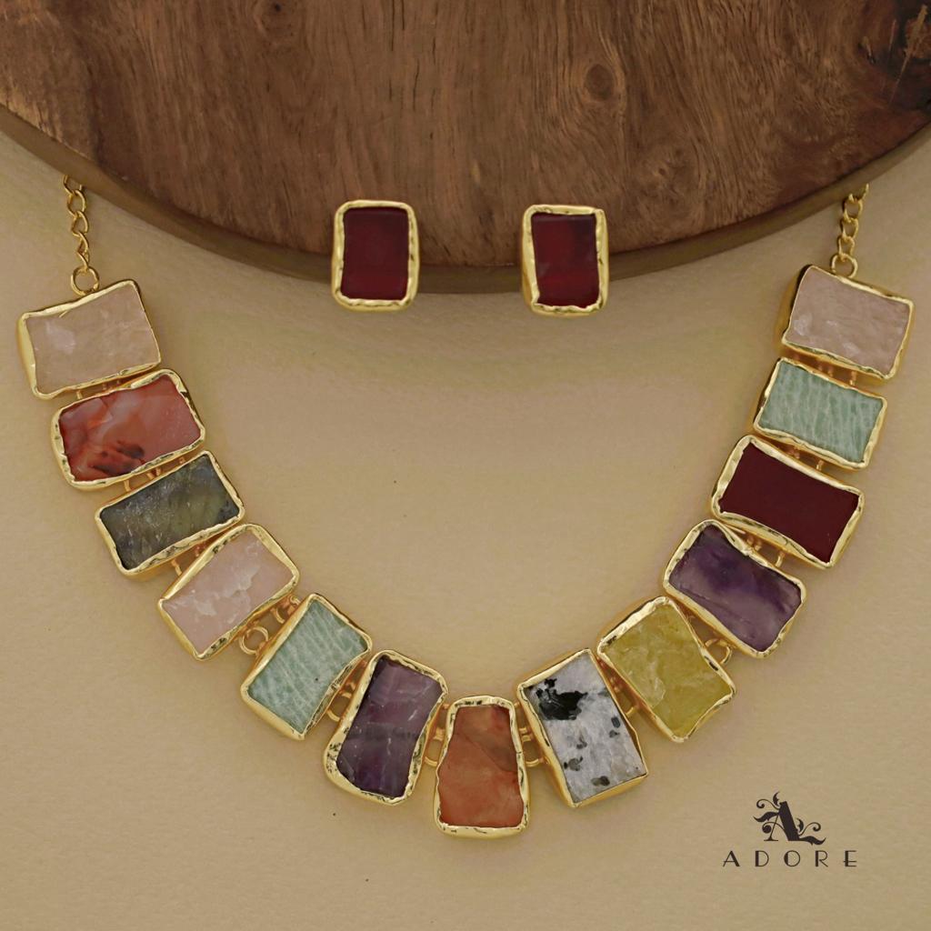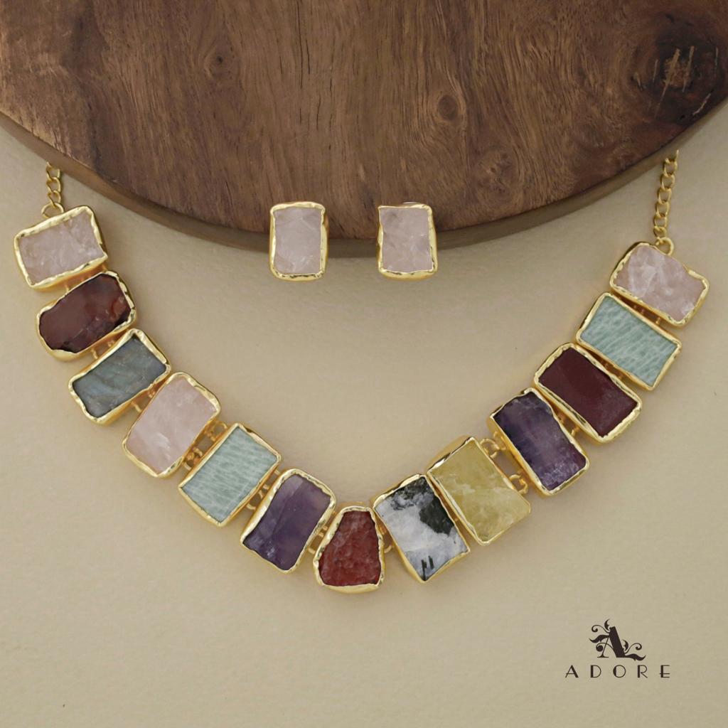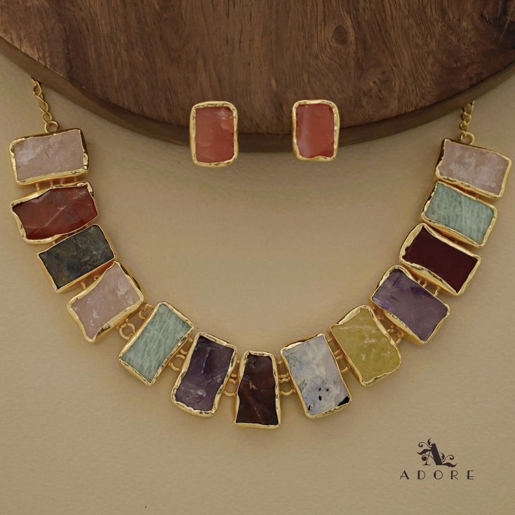 Rushika Rectangle Raw Stone Short Neckpiece With Stud