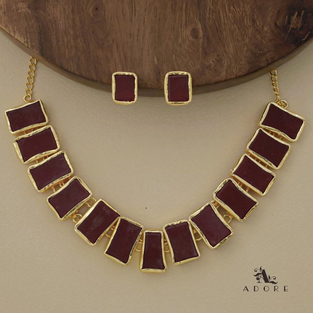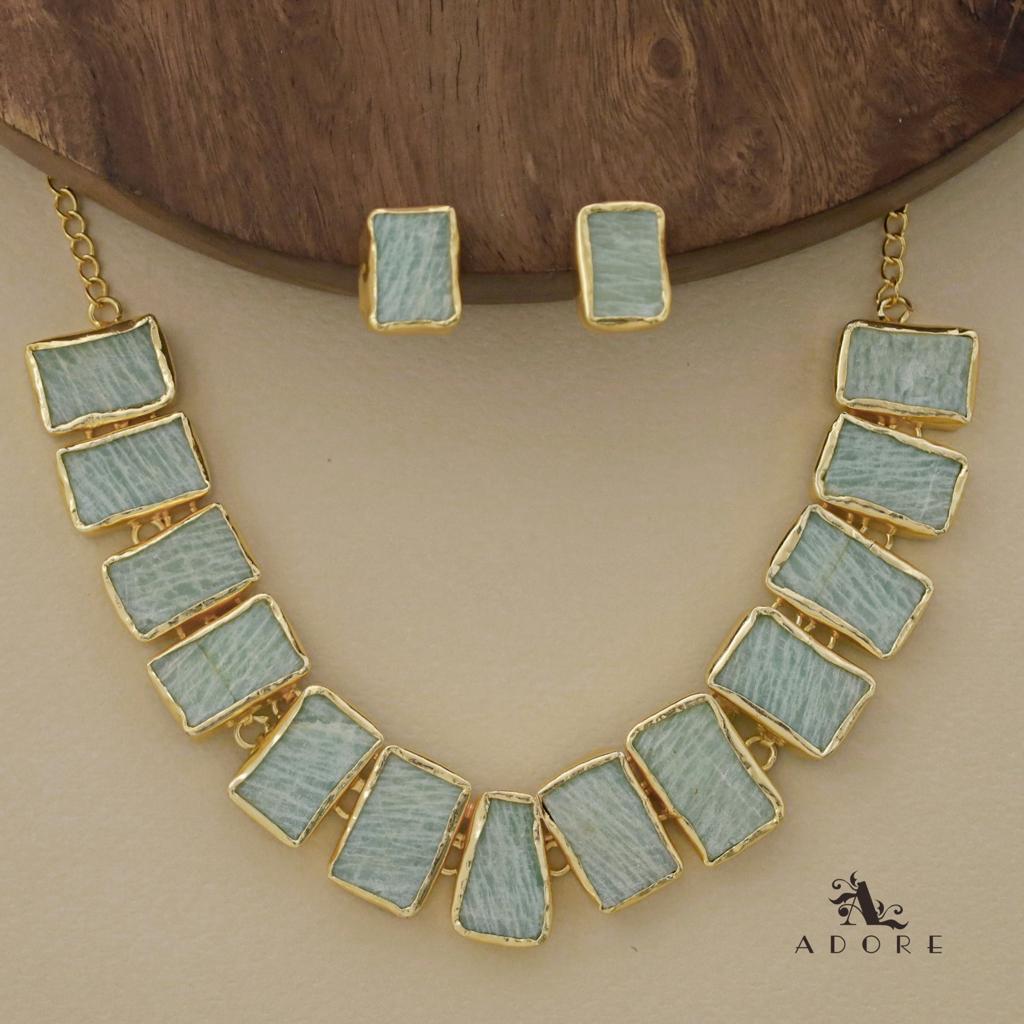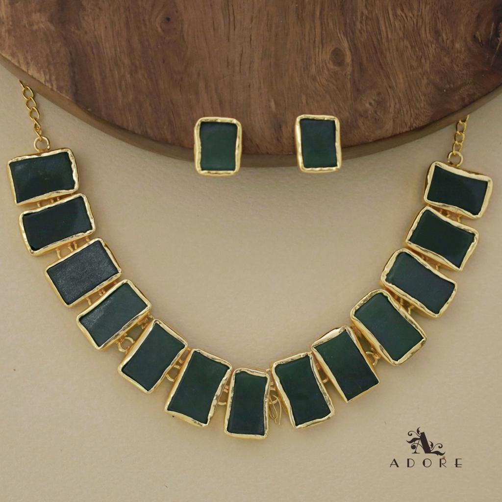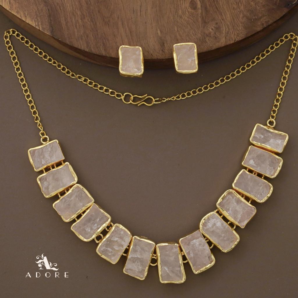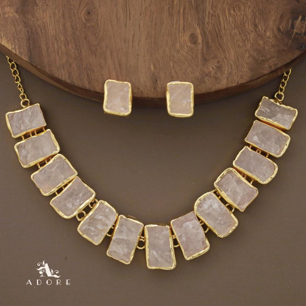Rushika Rectangle Raw Stone Short Neckpiece With Stud