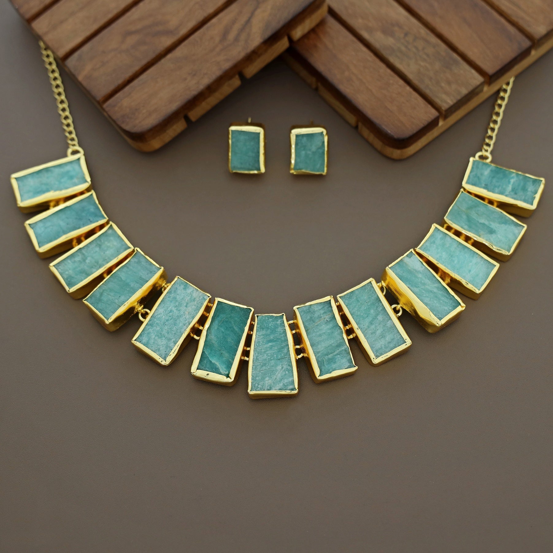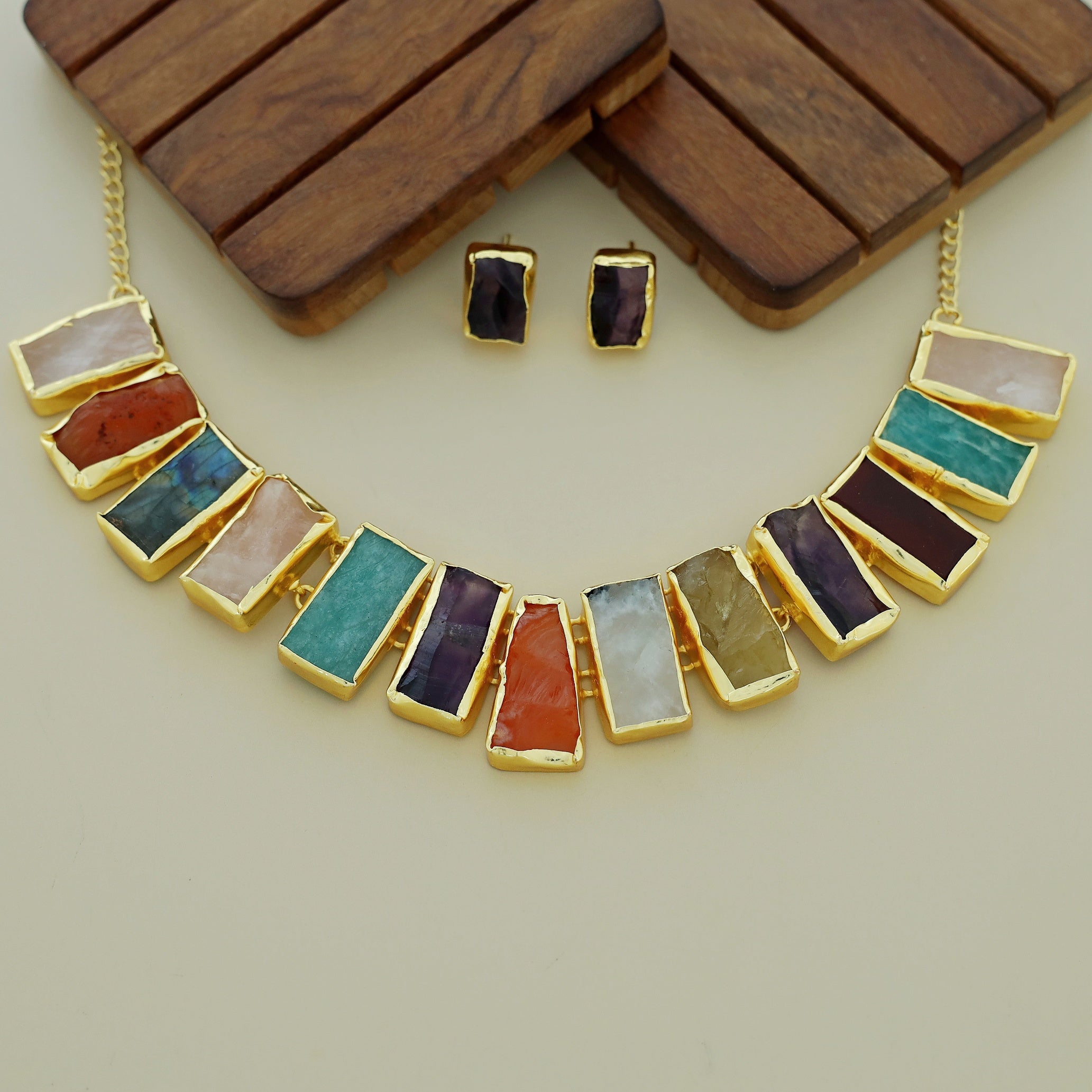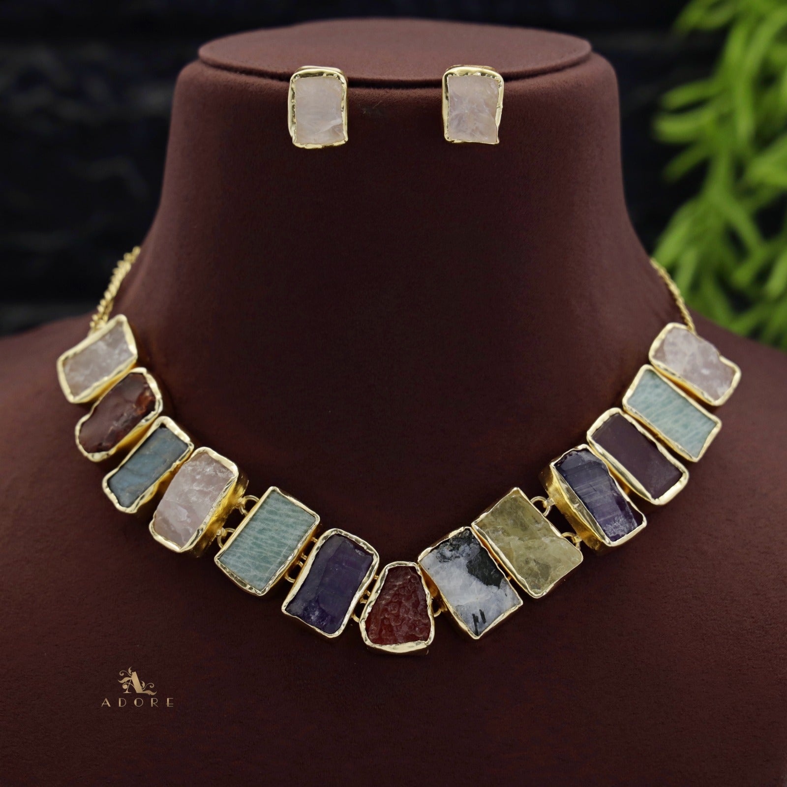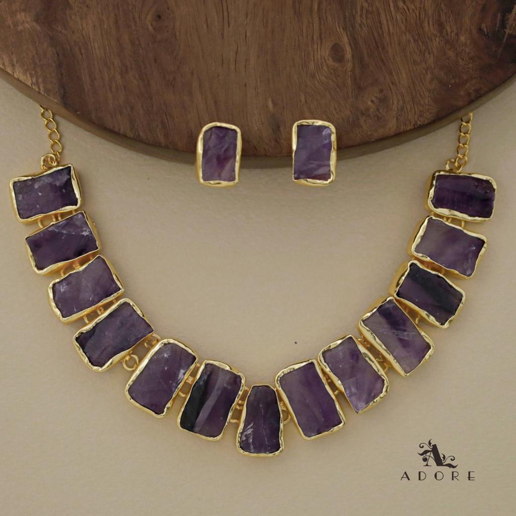 Rushika Rectangle Raw Stone Short Neckpiece With Stud