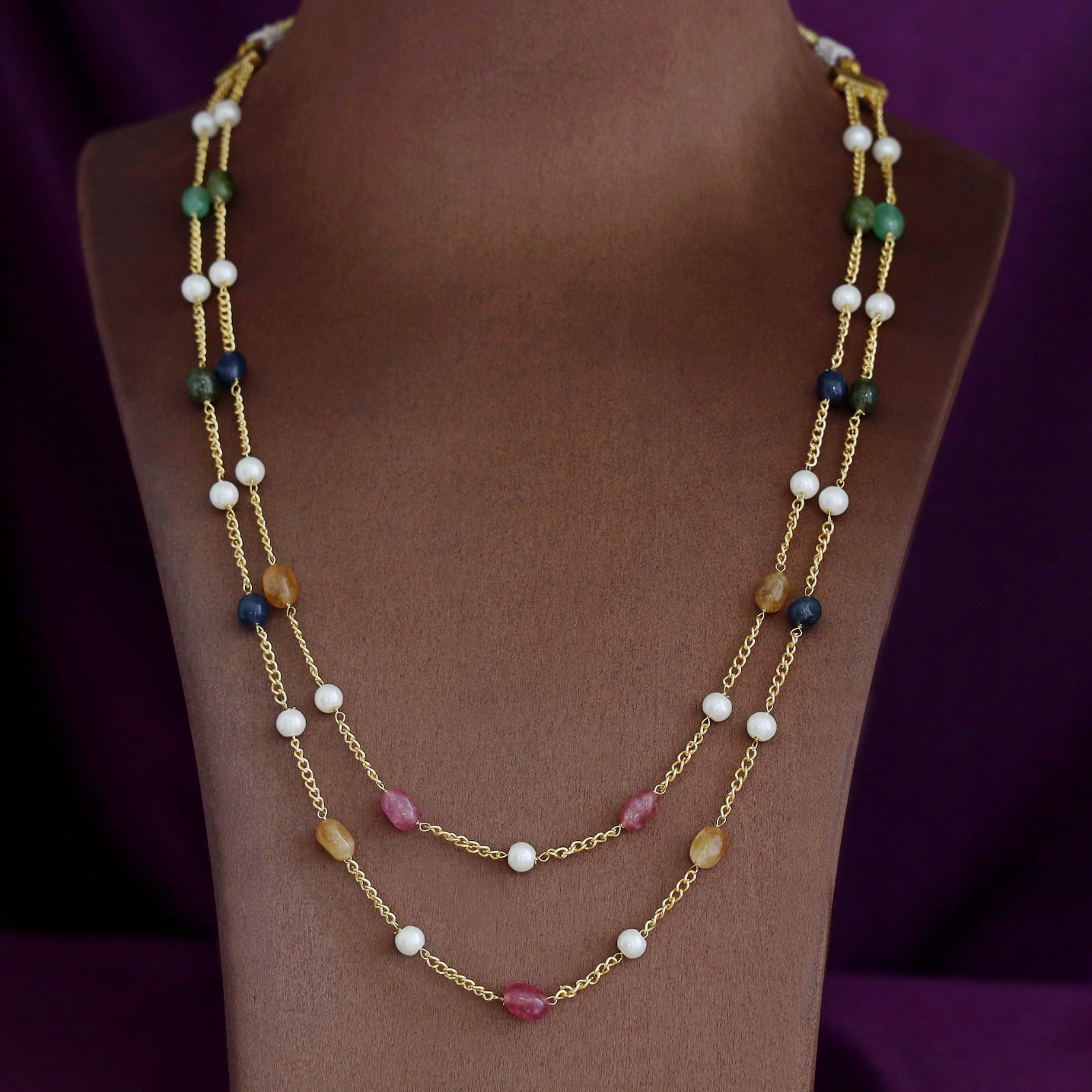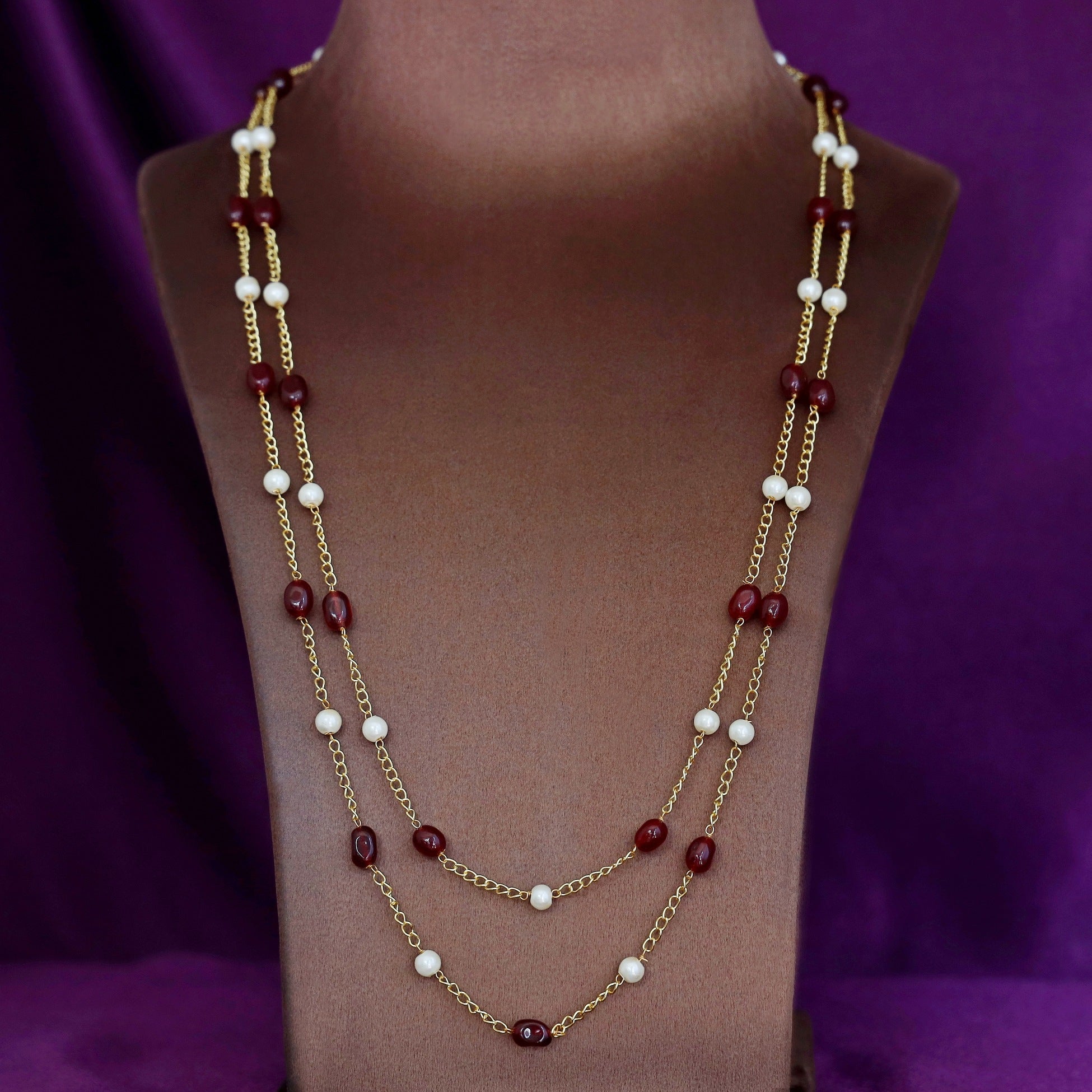 Usha Golden Two Layer Pearl Neckpiece