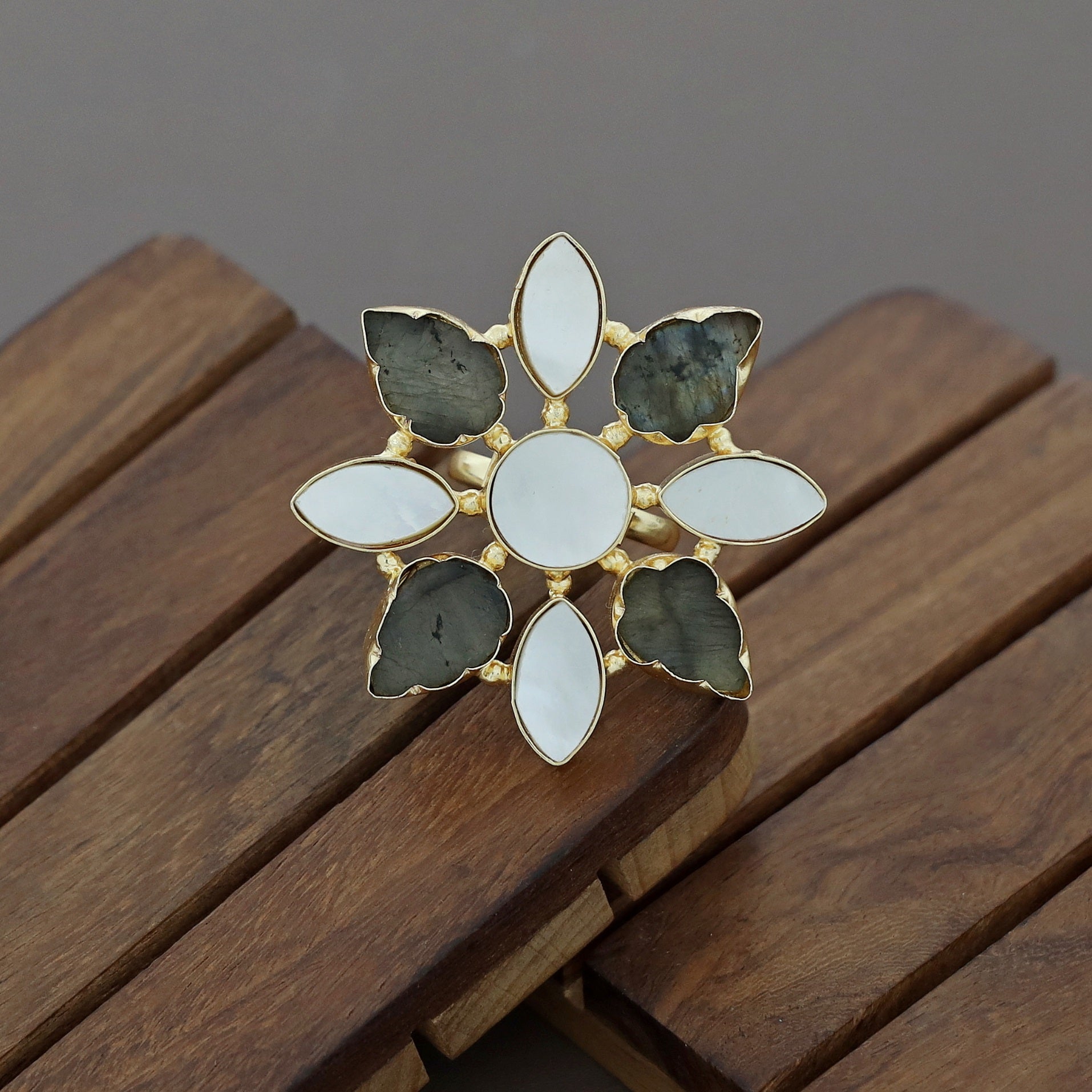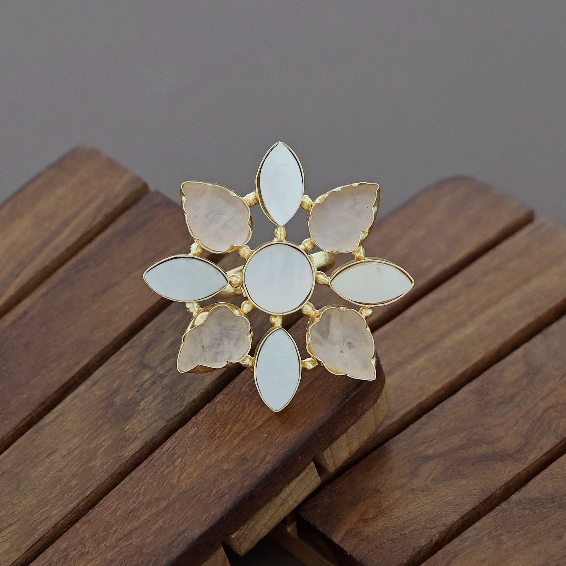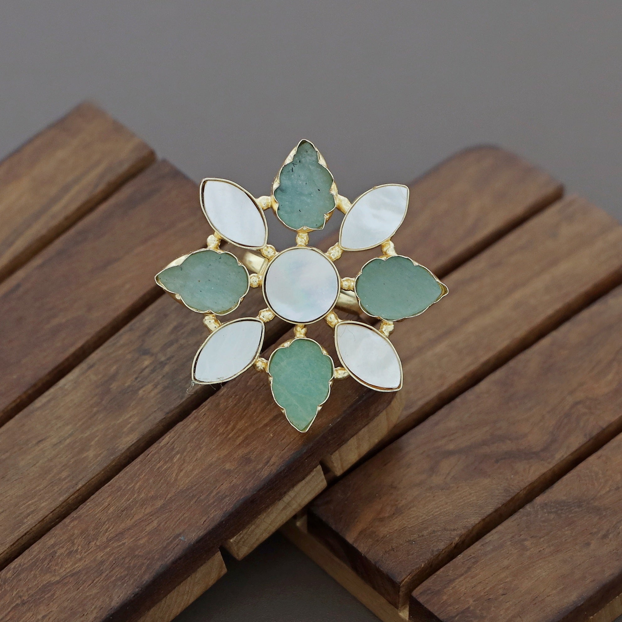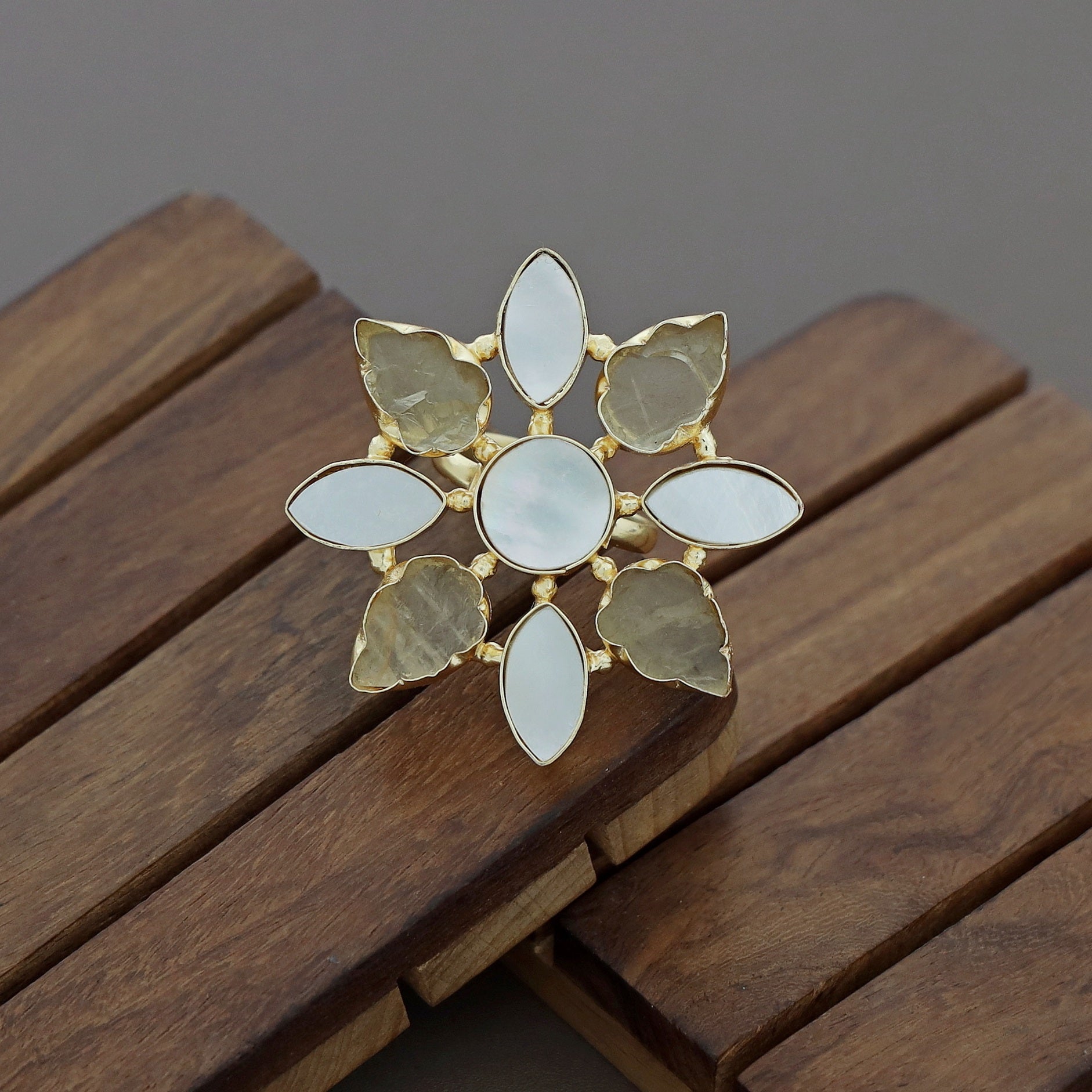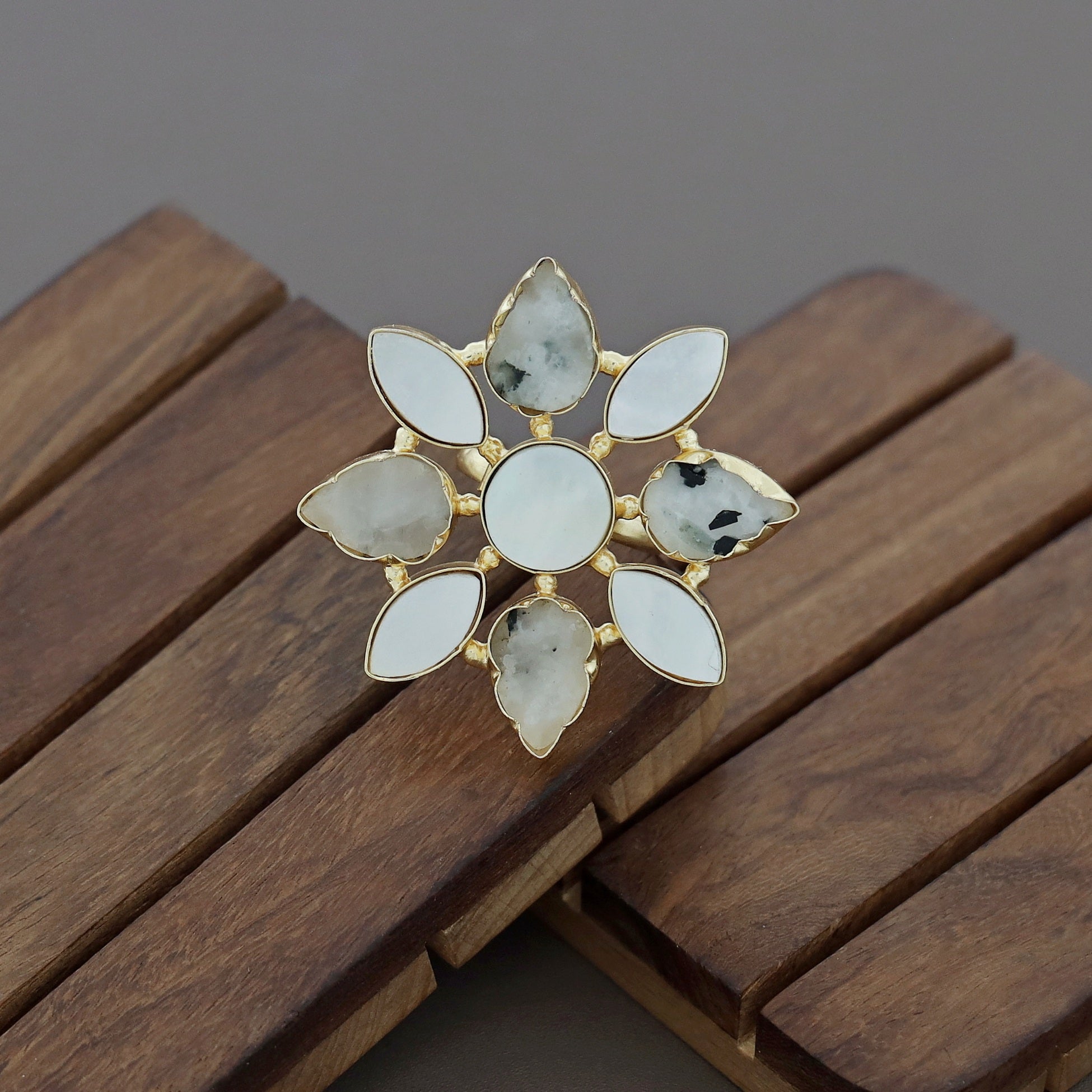 Whitney Floral MOP + Raw Stone Ring