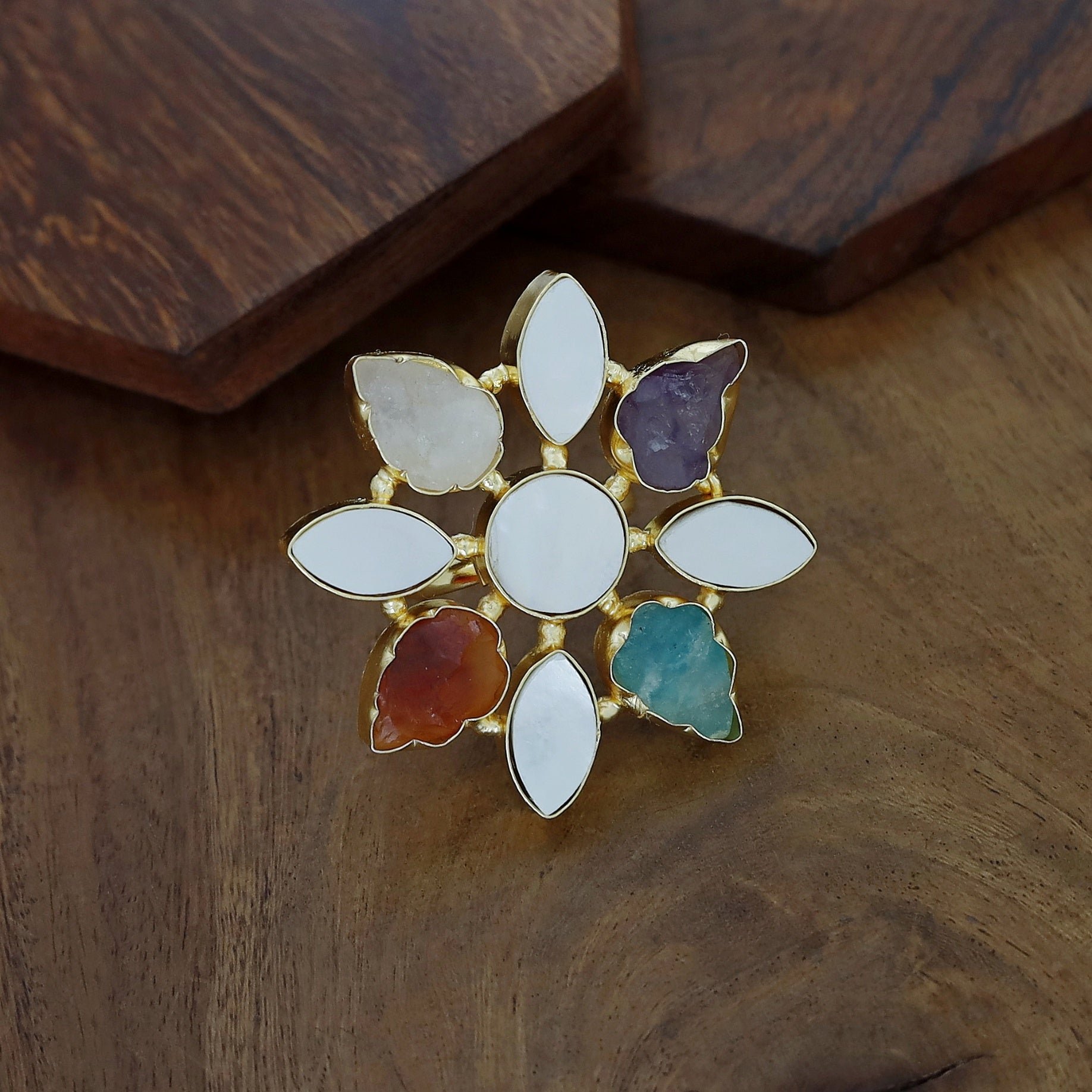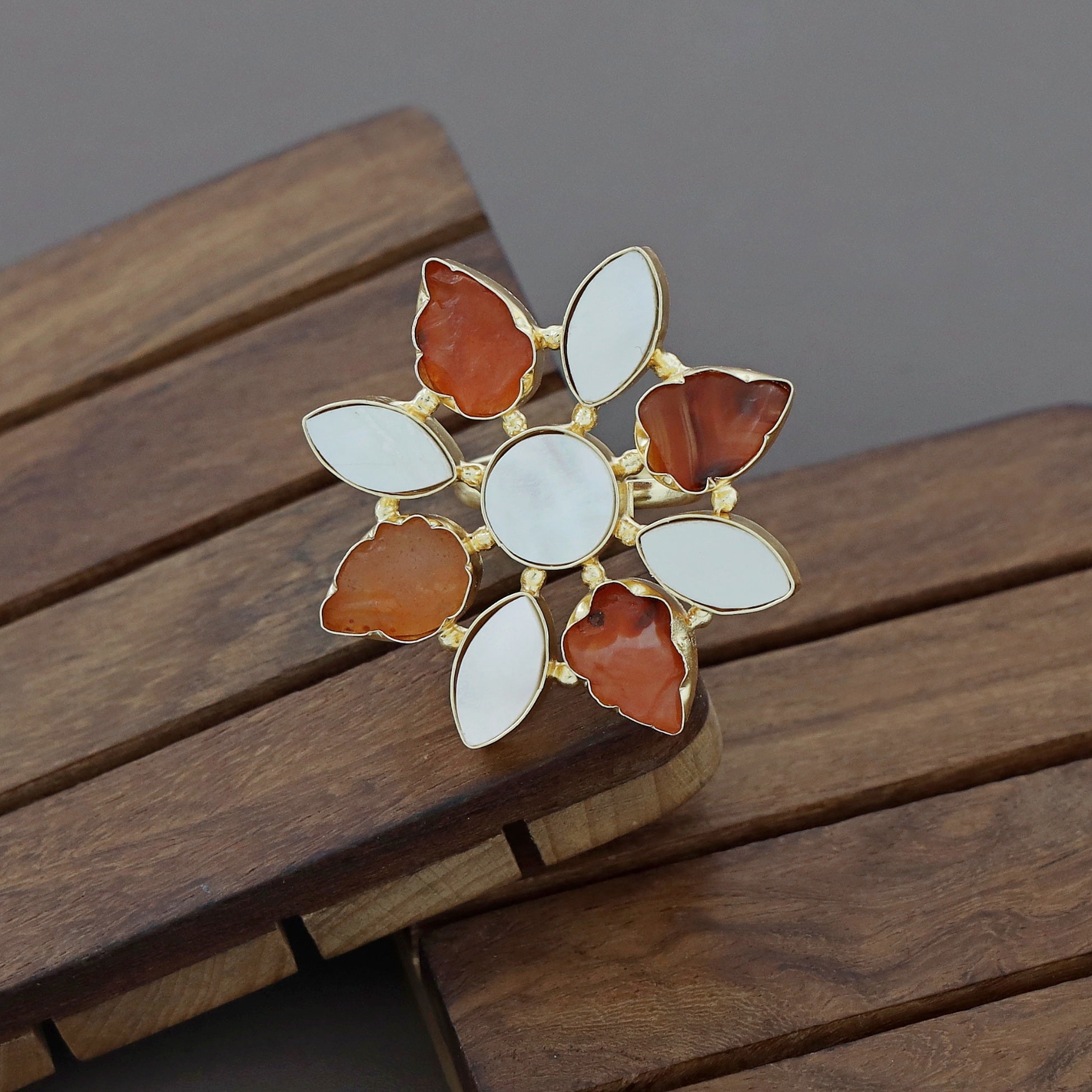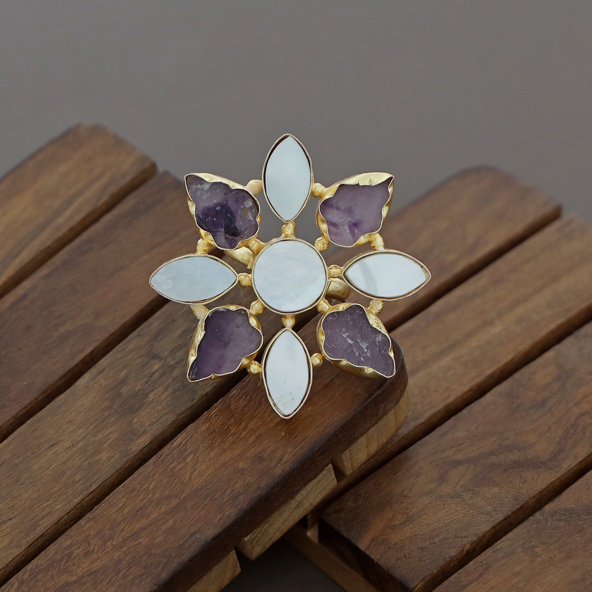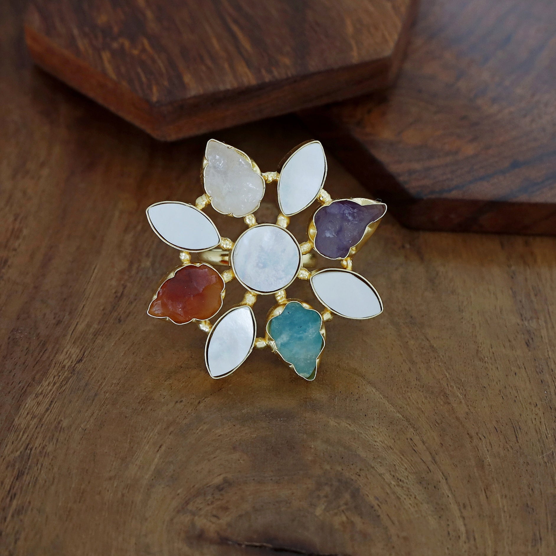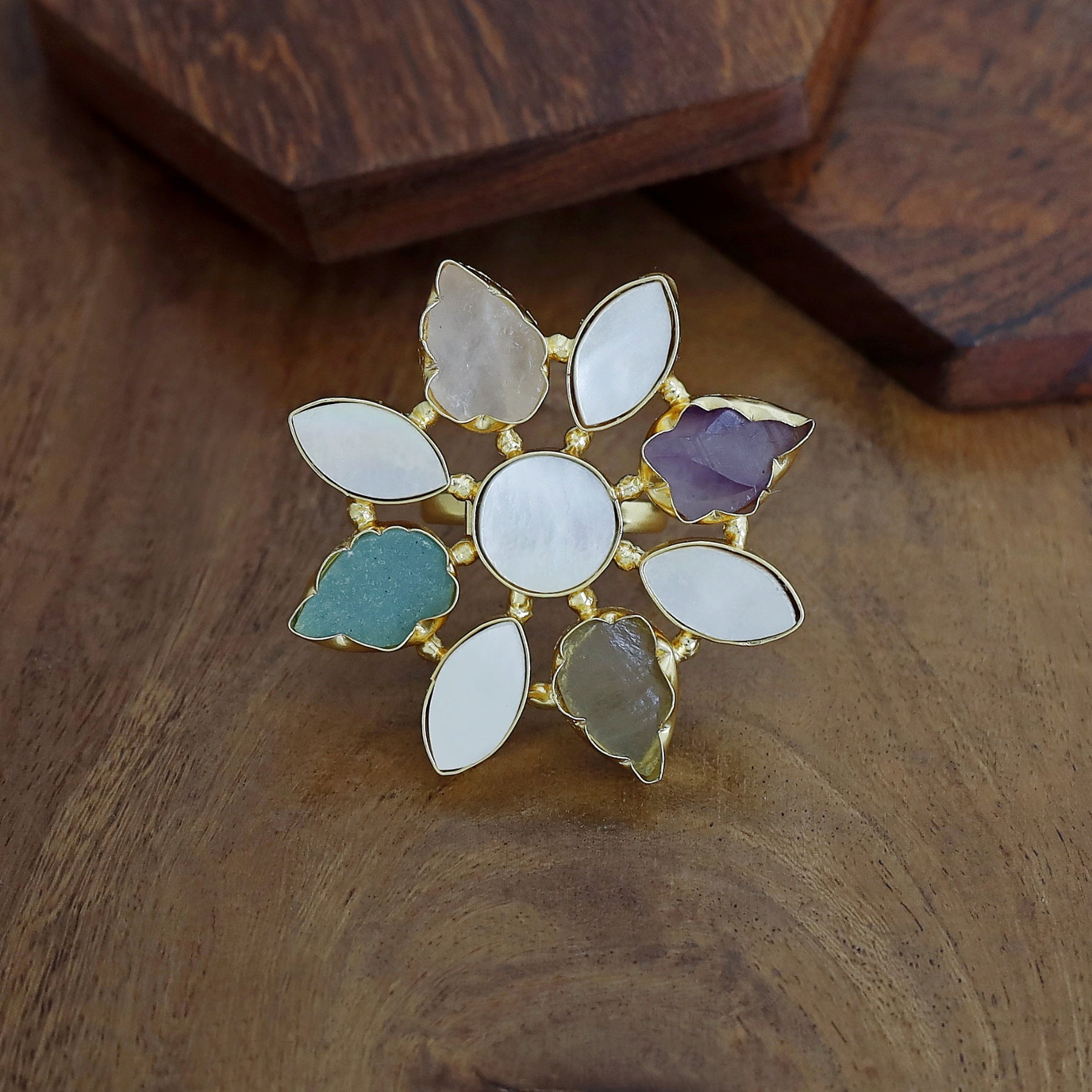 Whitney Floral MOP + Raw Stone Ring