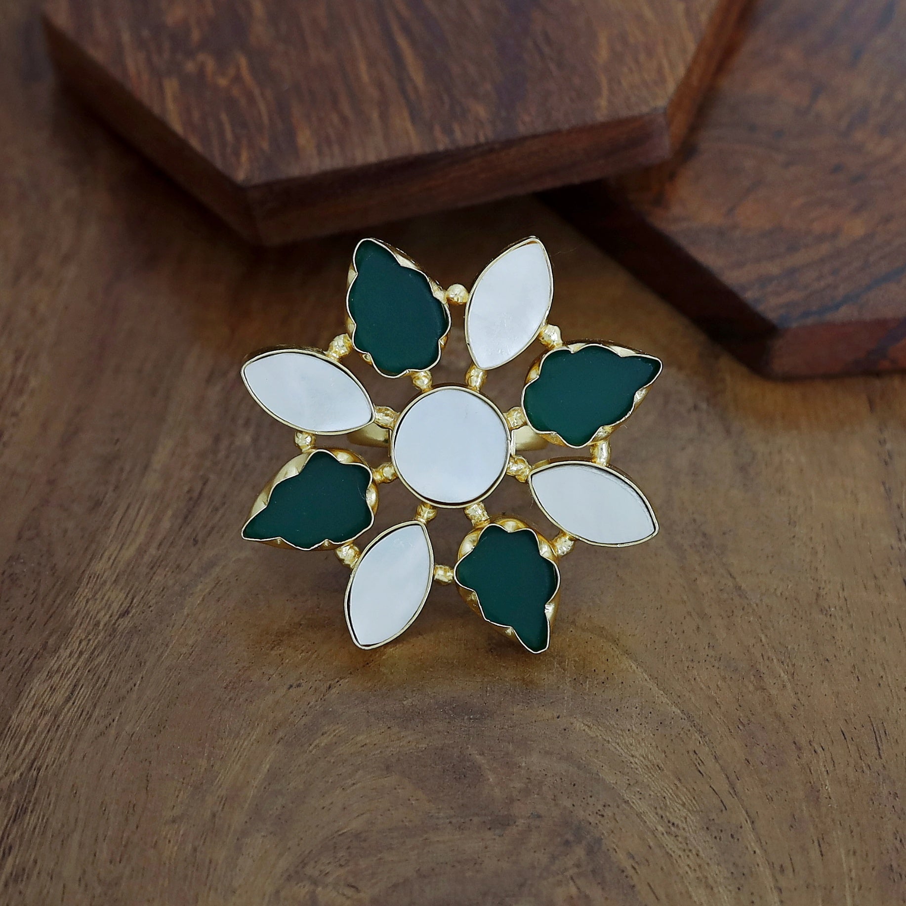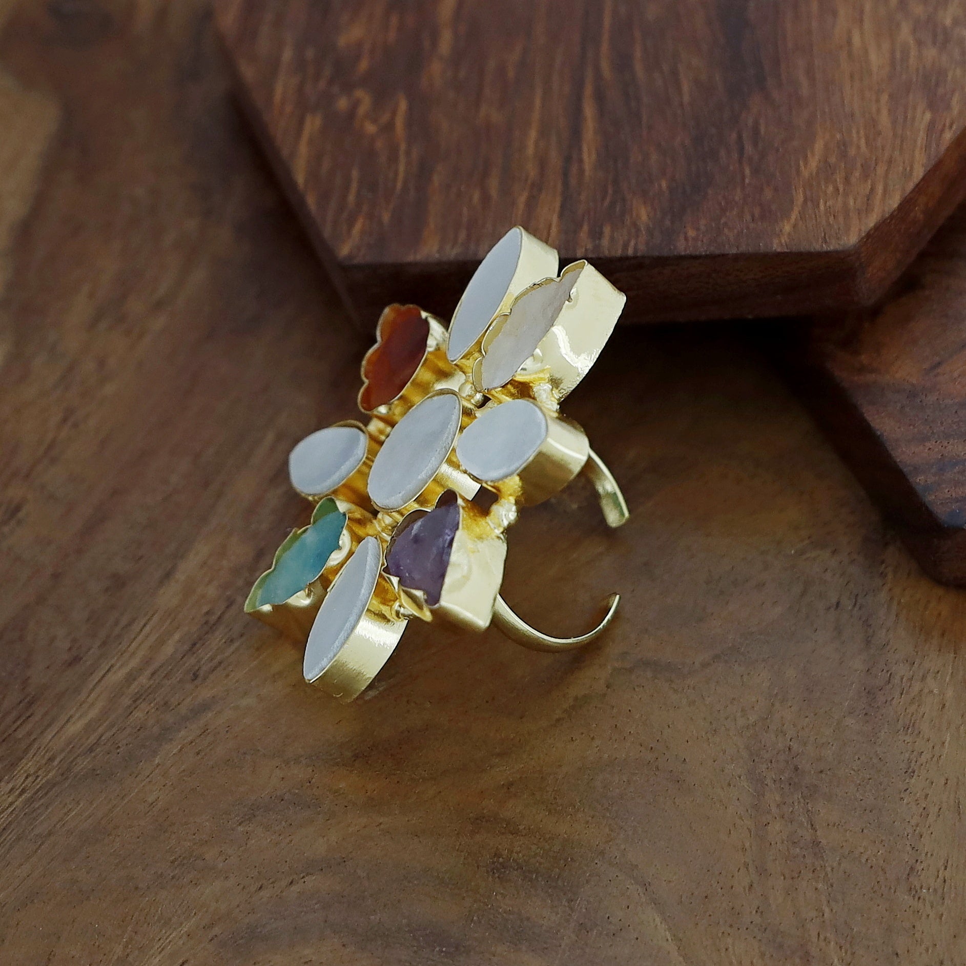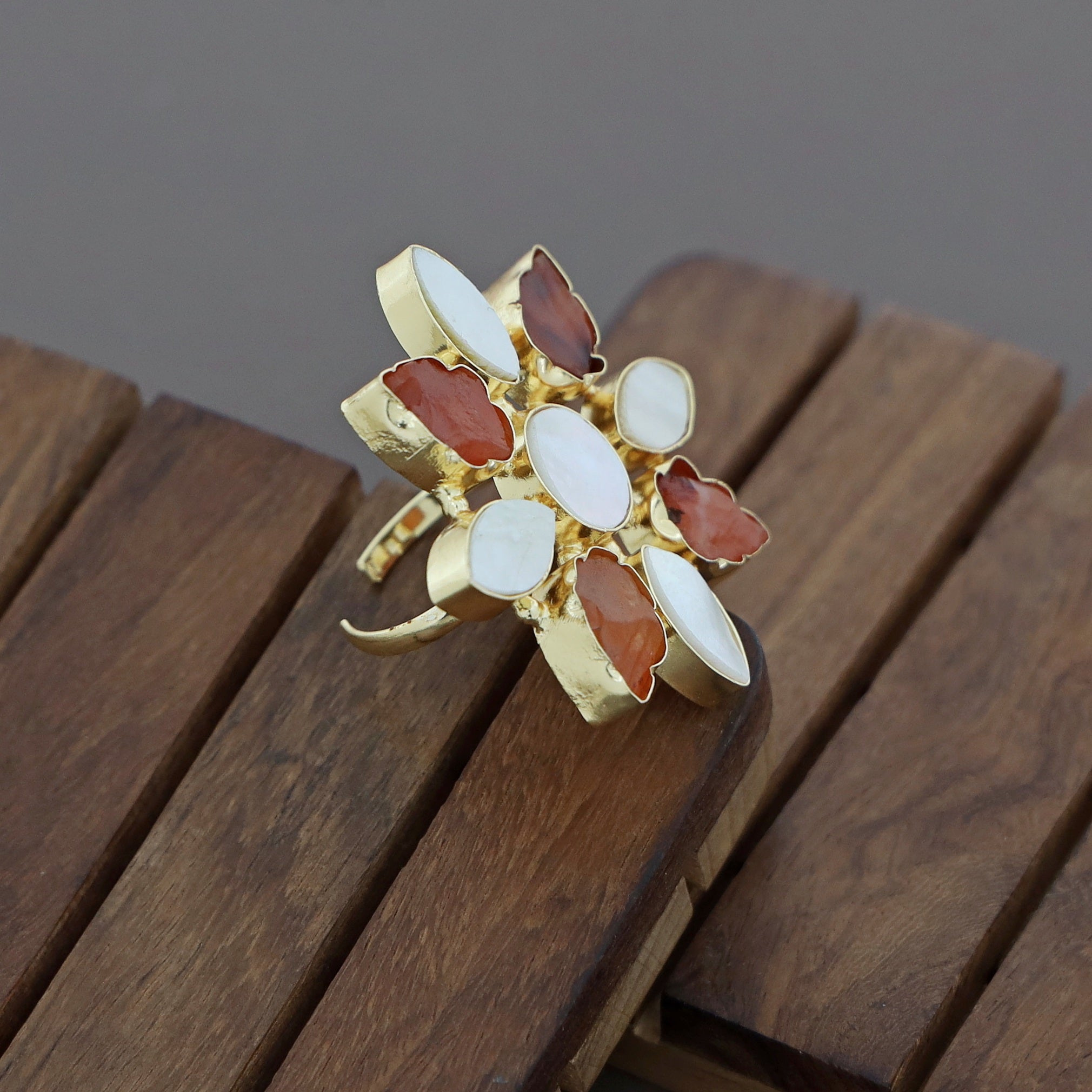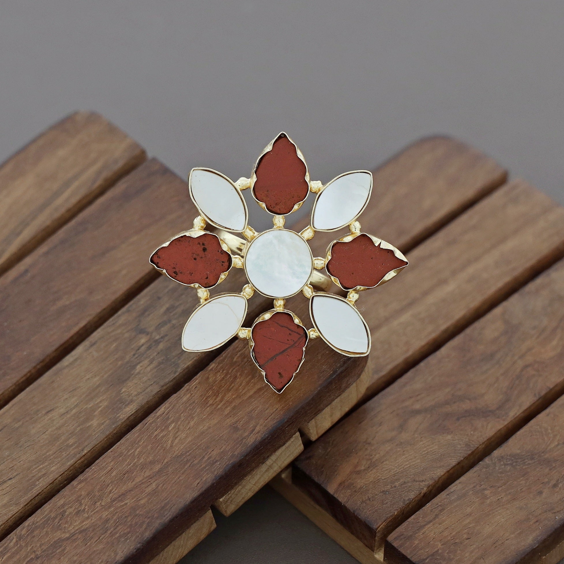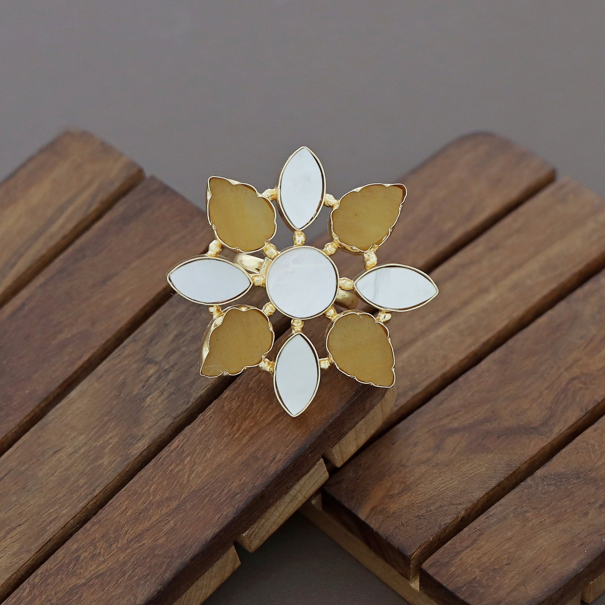 Whitney Floral MOP + Raw Stone Ring